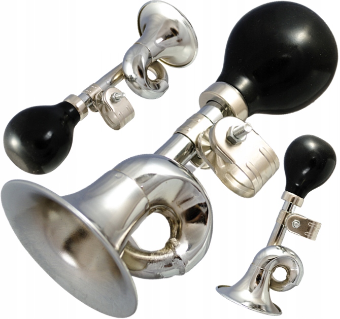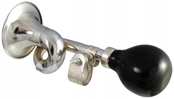 Trąbka metalowo- gumowa na rowerek lub hulajnogę dziecięcą. Wykonana z tworzywa sztucznego oraz z miękkiego, gumowego materiału w kształcie piłki nożnej. W środku znajduje się plastikowy "piszczek", który po naciśnięciu piłki wydaje głośny pisk.