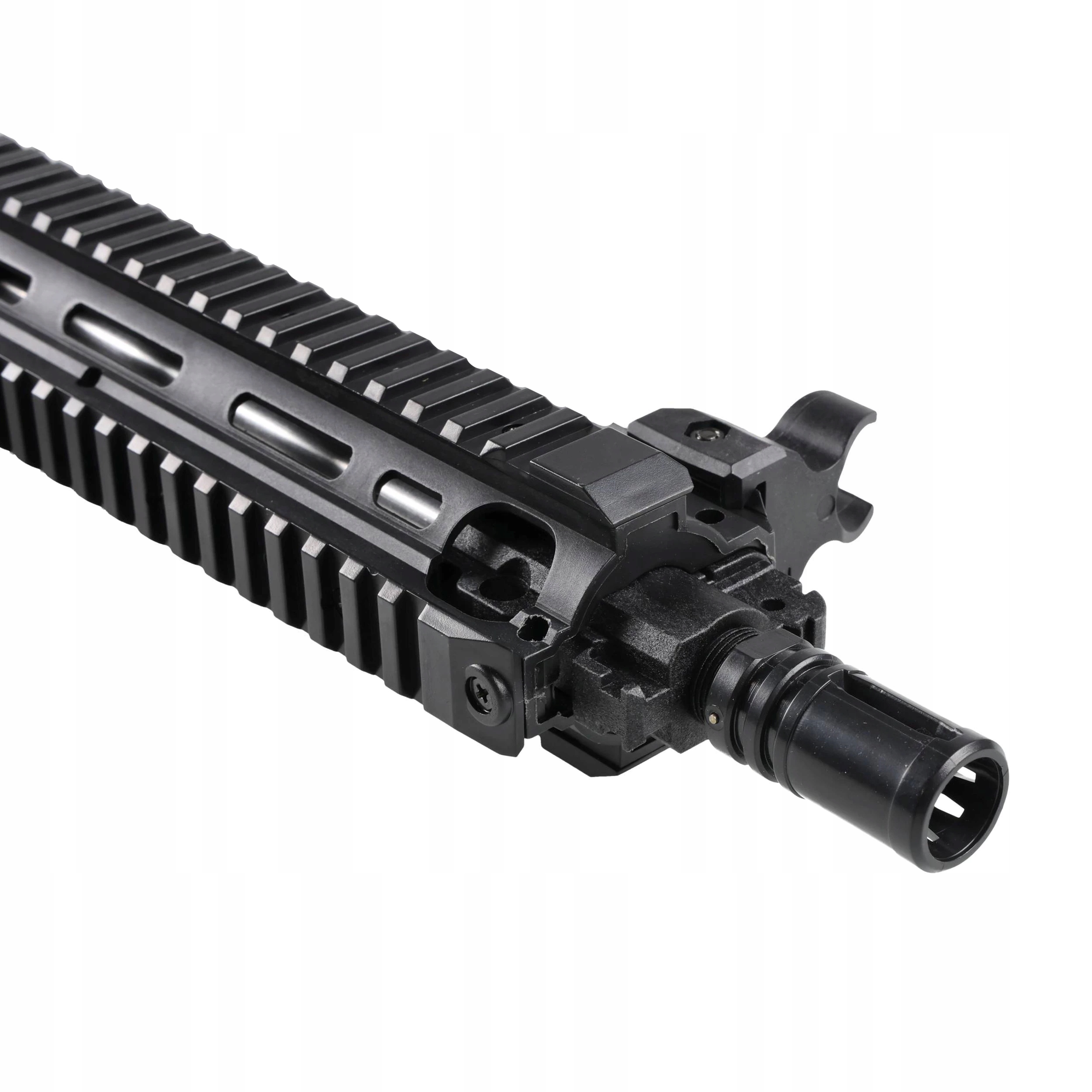 Replika HK416D ma łoże R.I.S. oraz górną szyną Picatinny, które pozwalają na używania dodatkowych akcesoriów strzeleckich np. chwytu wertykalnego, latarki lub kolimatora. Karabinek ma mechaniczne pprzyrządy celownicze, które po instalacji kolimatora można łatwo zdemontować. Kolba o regulowanej długości (5 pozycji) zakończona jest antypoślizgową stopką, zapewniającą pewny punkt oparcia. Na kolbie oraz łożu znajduję się zaczepy pasa nośnego.