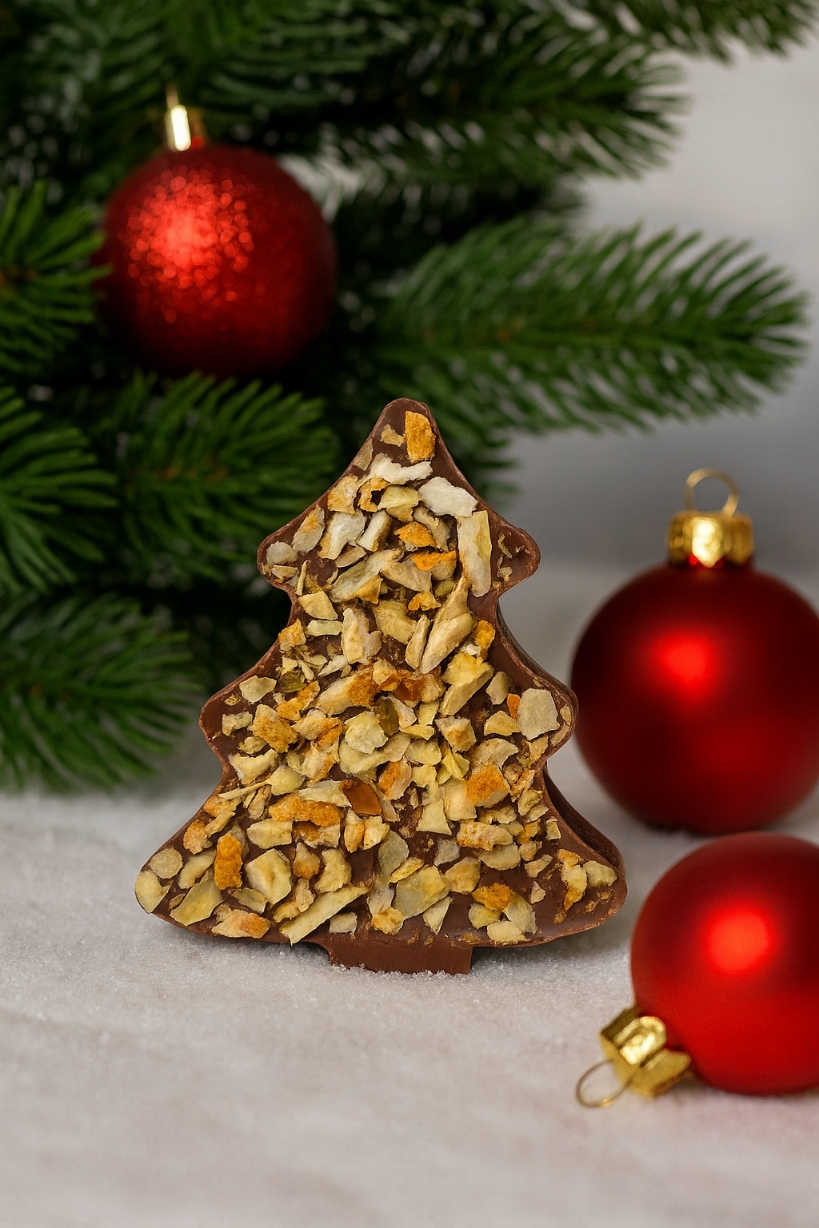 Wprowadź magię świąt do swojego domu z wyjątkową czekoladową choinką od Cortez! To harmonijne połączenie aksamitnej mlecznej czekolady (min. 33,6% masy kakaowej) z naturalną, liofilizowaną pomarańczą, która zachwyca świeżym, cytrusowym aromatem i lekkością smaku.