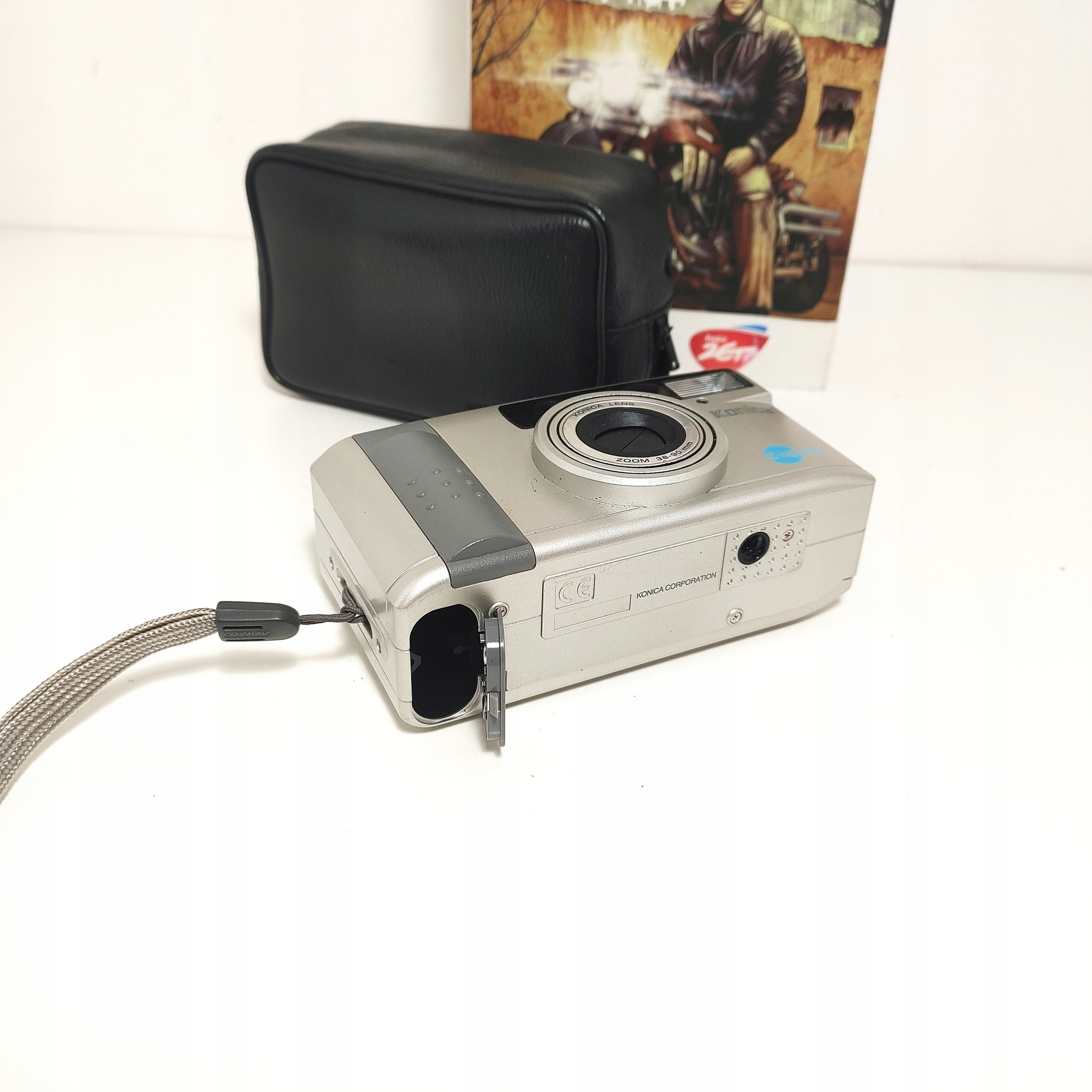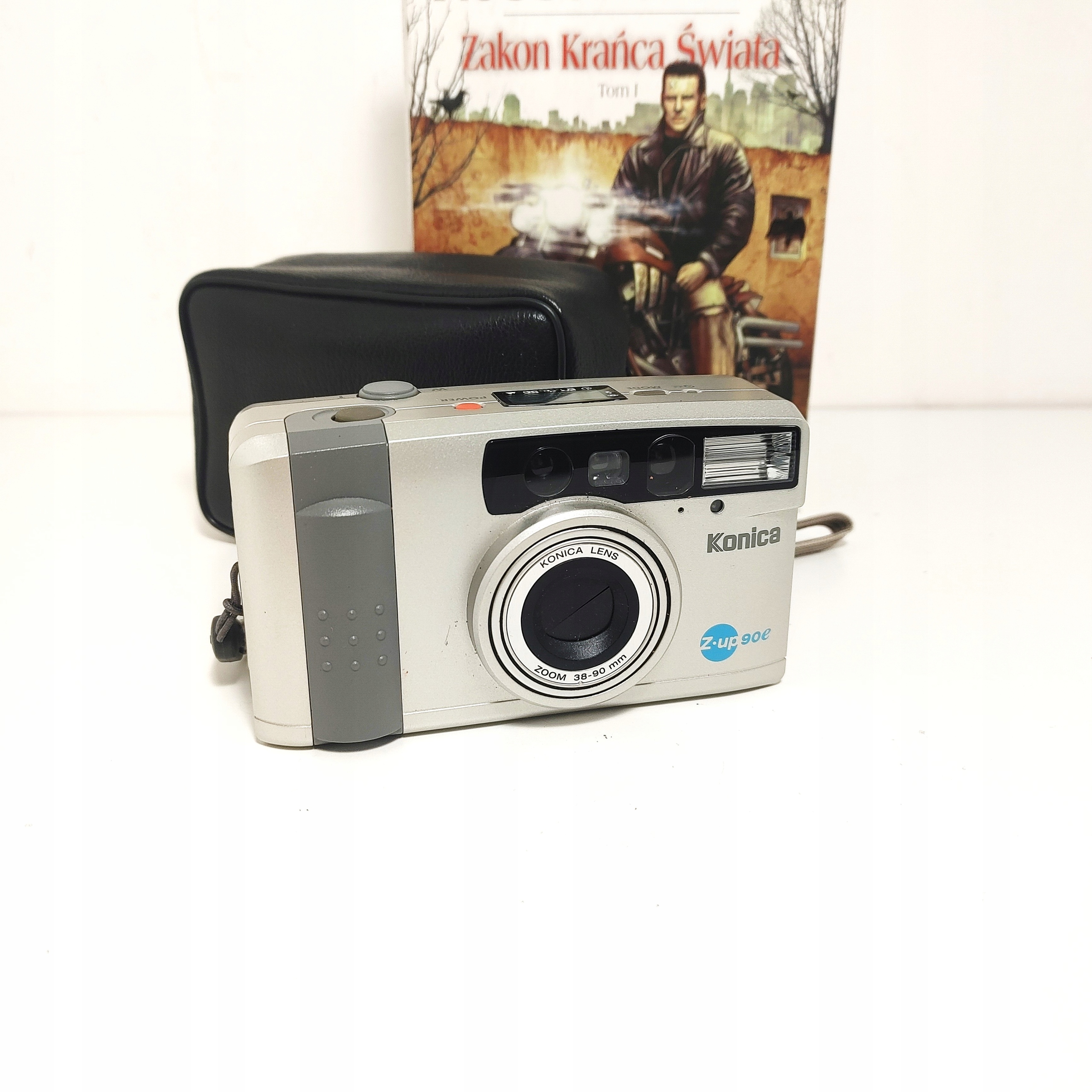 Konica Z-up 90e 35mm aparat analogowy w ładnym stanie w pełni sprawny. W zestawie etui. Aparat ze zmienną ogniskową w zakresie 38-90 mm.