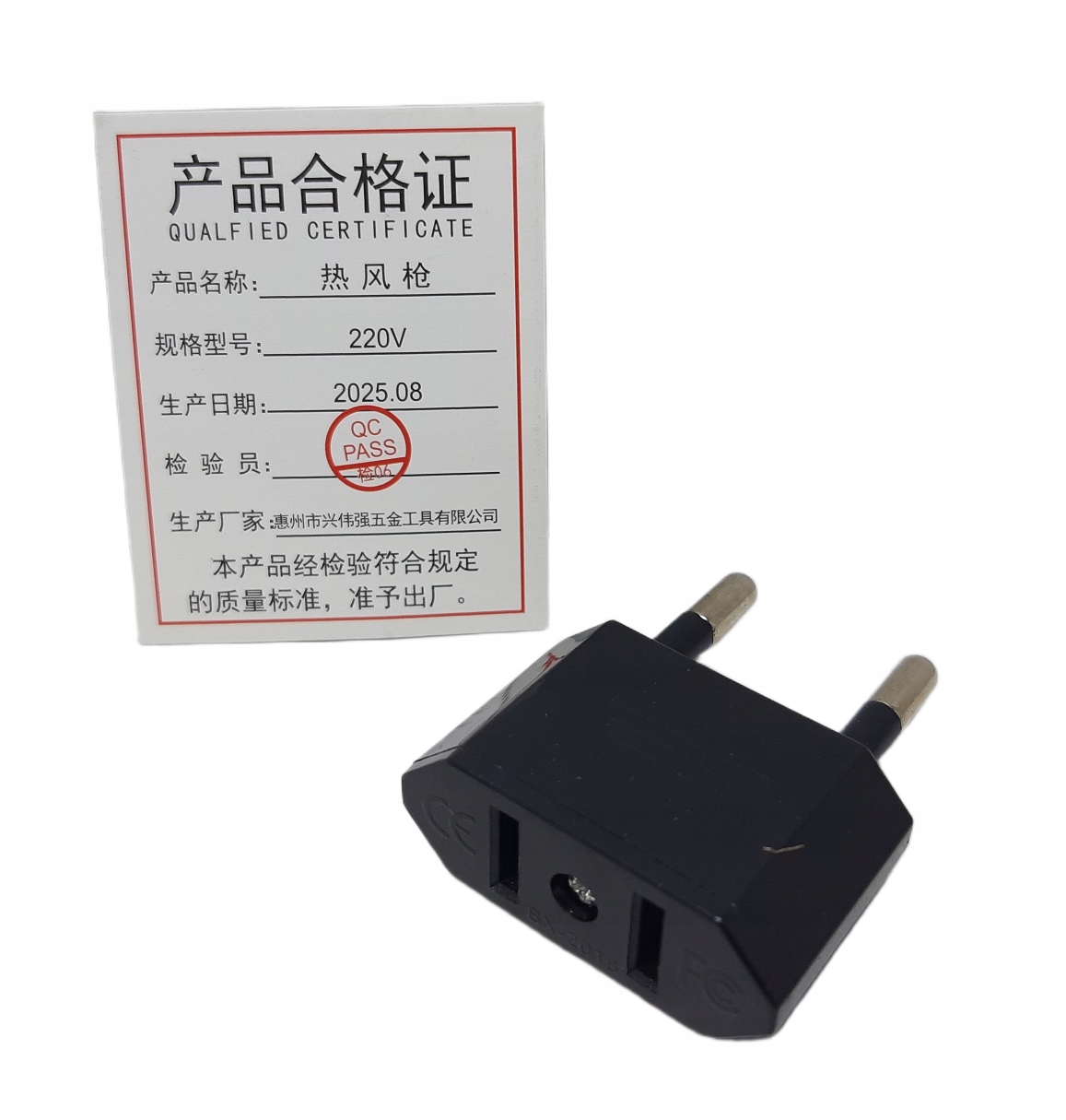 W zestawie znajduje się adapter do podłączenia opalarki pod gniazdka Polskie