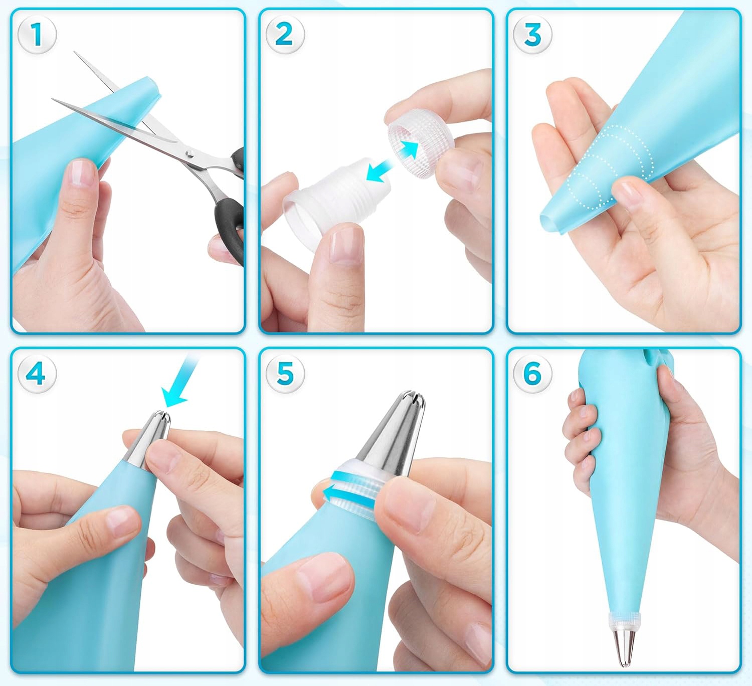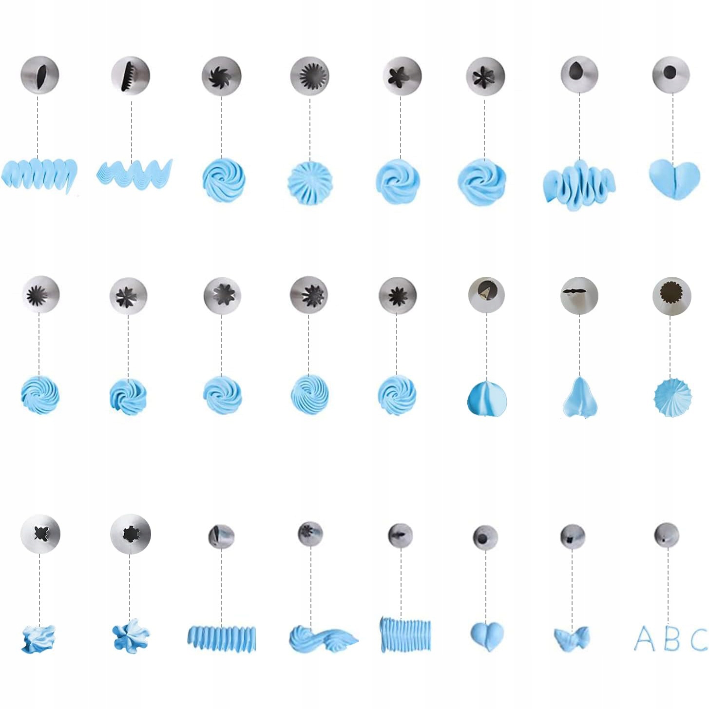 Wszechstronny zestaw zawiera aż 24 różnorodne końcówki, 2 silikonowe rękawy cukiernicze, 3 szpatułki, szczoteczkę - wycior - do czyszczenia, 2 opaski zaciskowe i 2 łączniki, dając Ci nieograniczone możliwości w dekorowaniu tortów, babeczek, ciasteczek i innych wypieków.