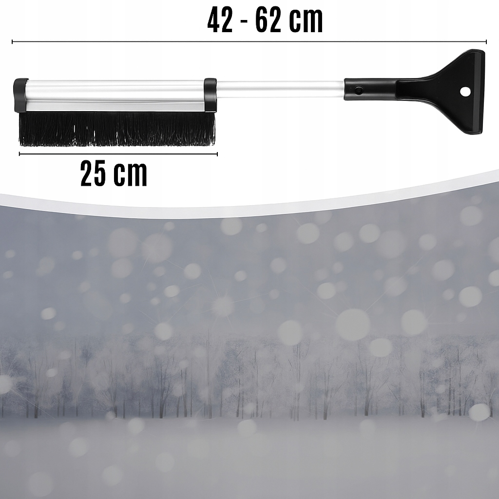 ➡️ DWUFUNKCYJNOŚĆ 2W1 – łączy szczotkę do śniegu i skrobaczkę do lodu w jednym narzędziu. Pozwala na szybkie oczyszczenie szyb, dachu i karoserii w kilka chwil.