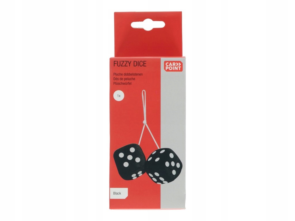Ozdób wnętrze samochodu tymi kultowymi kostkami Carpoint. Czarne kostki można łatwo zawiesić na lusterku wewnętrznym jako dekorację lub przymocować do szyby za pomocą przyssawki. Miękkie pluszowe kostki mają wymiary około 6x6x6 cm i są połączone nylonowym sznurkiem o długości 40 cm.