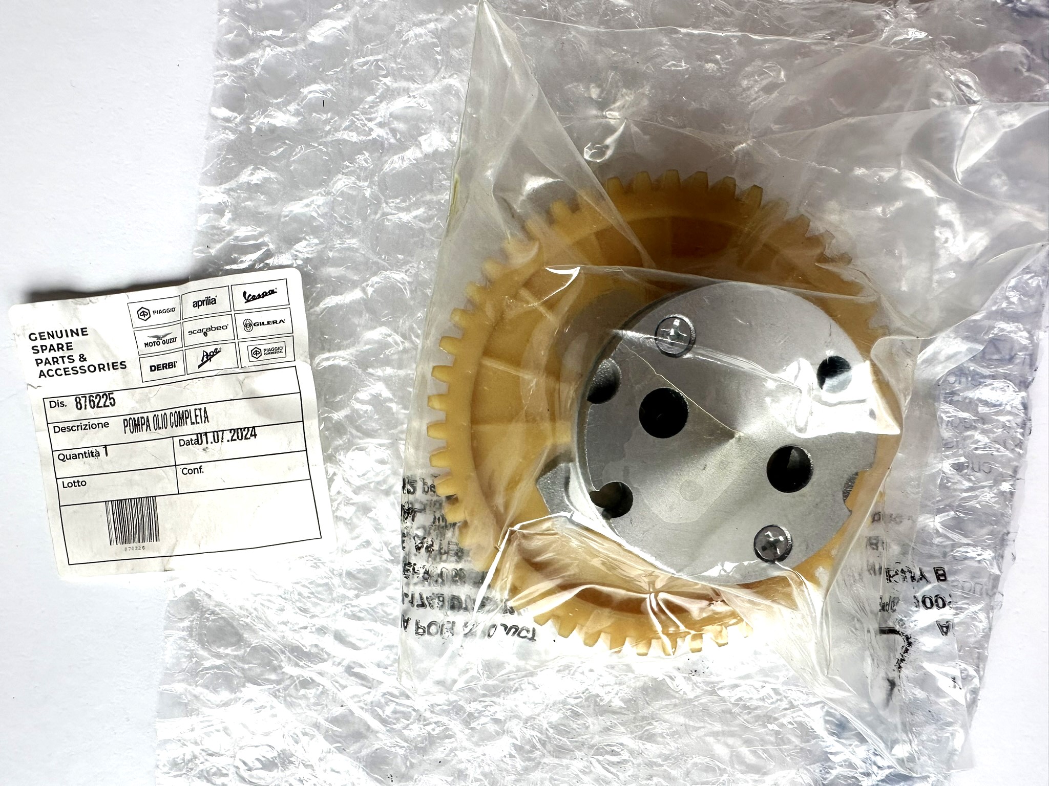 Oryginalna pompa oleju przeznaczona do czterosuwowych maxiskuterów marek Aprilia, Gilera oraz Piaggio, wyposażonych w silniki Piaggio o pojemności od 400 do 500 cm³.