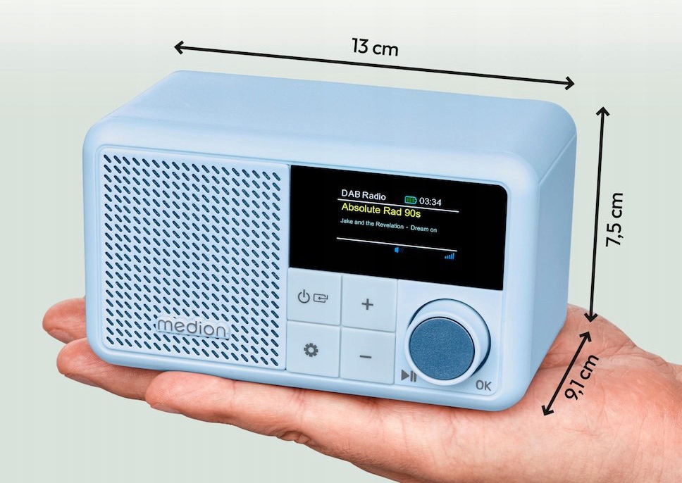 Radio MEDION S66822 DAB+ rozjaśni Twoje codzienne życie! Możesz wybierać między DAB+ i FM – po prostu zapisz swoje ulubione stacje i ciesz się szeroką gamą programów. Jeśli wolisz słuchać własnej listy odtwarzania, szybko podłącz smartfon lub tablet przez Bluetooth. Kolorowy wyświetlacz o przekątnej 1,4 cala oznacza, że nigdy nie stracisz kontroli nad tym, co się dzieje. Dzięki bardzo kompaktowej konstrukcji radio idealnie pasuje do każdego stołu, a nawet na półkę. Dzięki ochronie przed zachlapaniem IPX1 idealnie nadaje się do kuchni, łazienki lub w podróży. Tam, dzięki wbudowanej baterii o czasie pracy do 6,5 godzin, nie rozładuje się tak szybko, co czyni je idealnym towarzyszem – czy to na śniadaniu, czy w podróży.