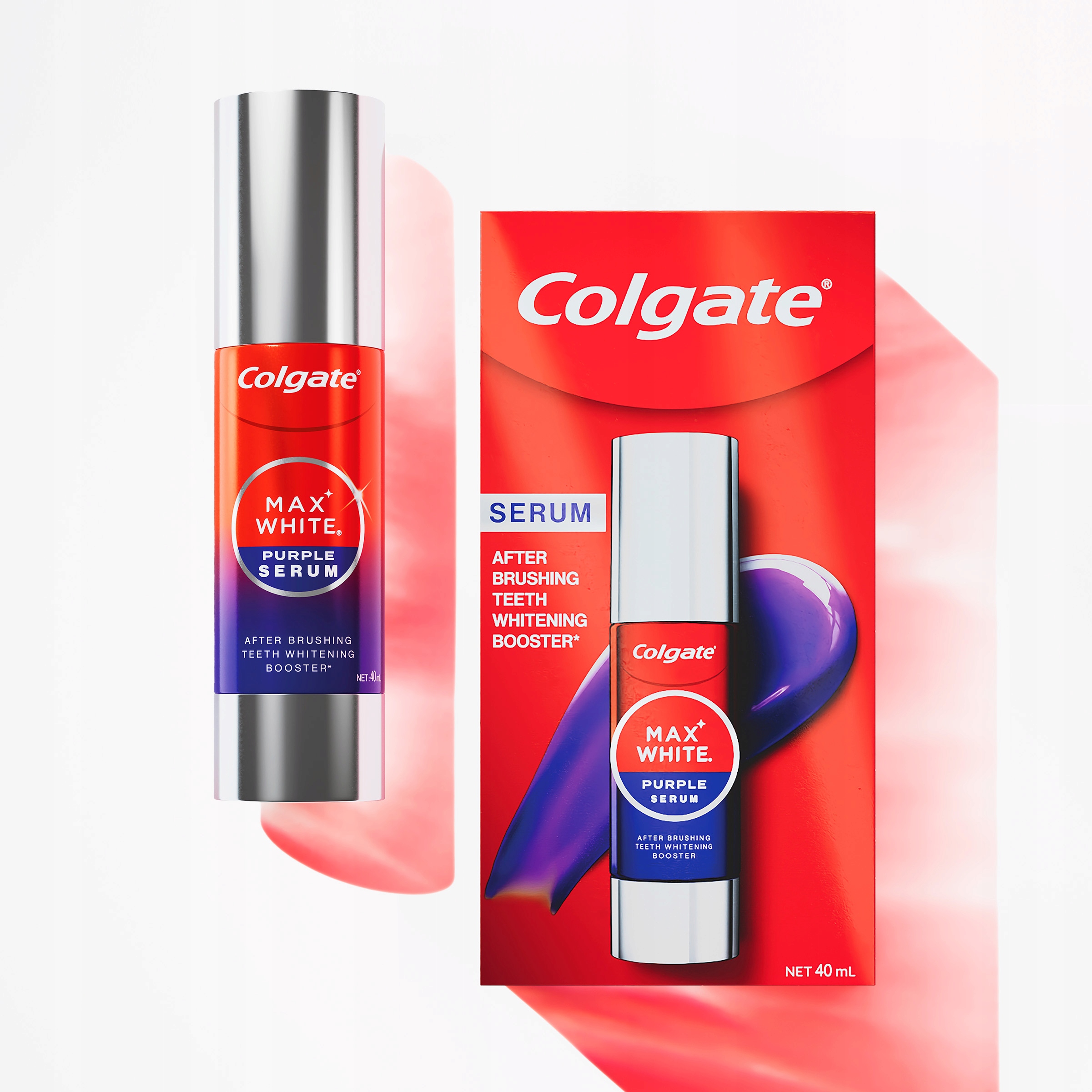 Zaprojektowane do stosowania po szczotkowaniu, fioletowe serum wzmacniające wybielanie zębów* zostało oparte na formule o podwójnym działaniu dla natychmiastowej korekty koloru* i długotrwałych¹ efektów wybielania zębów!