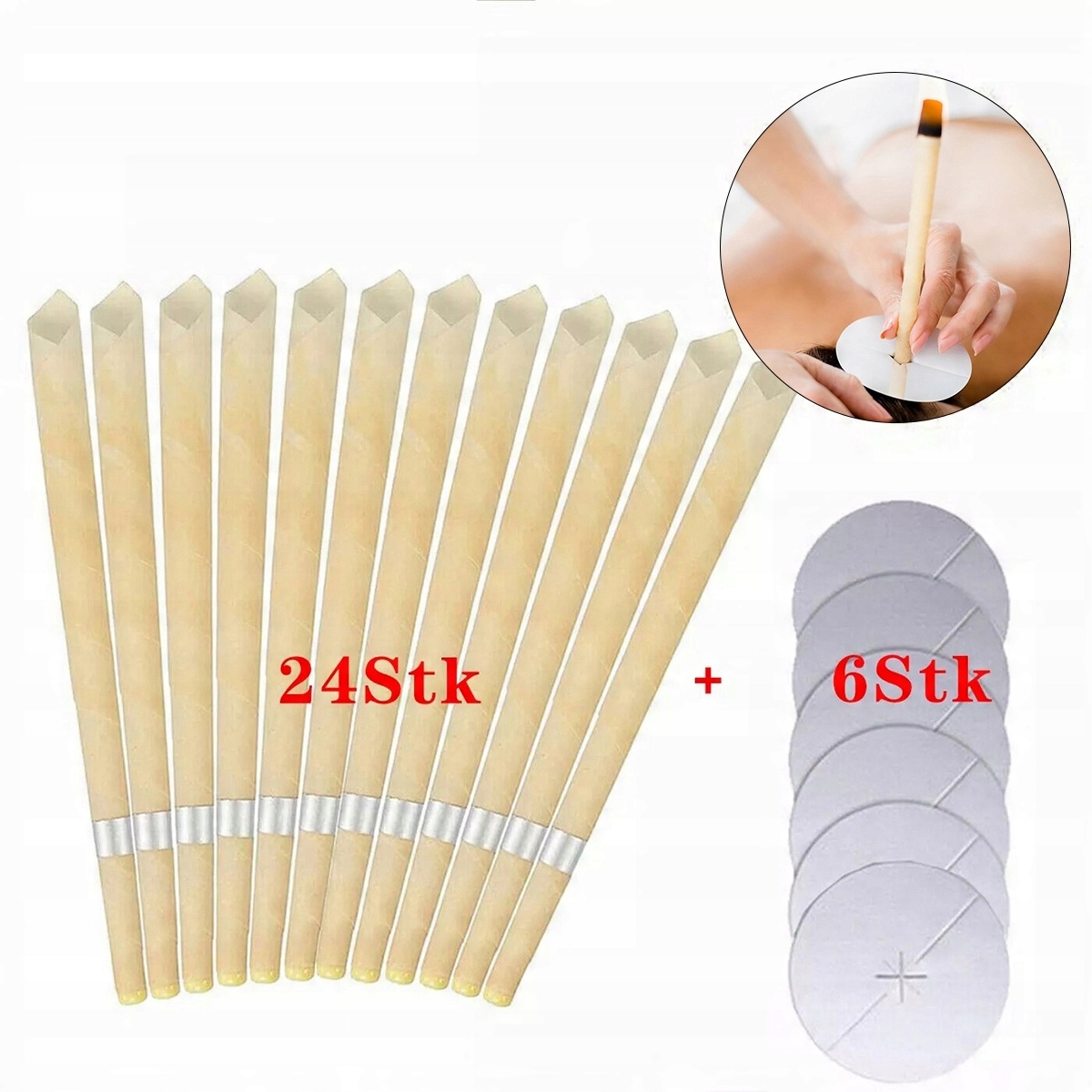 Uwaga: Łącznie 30 sztuk = 24 x wosk do czyszczenia uszu + 6 x uchwytów. są ZESTAWEM.