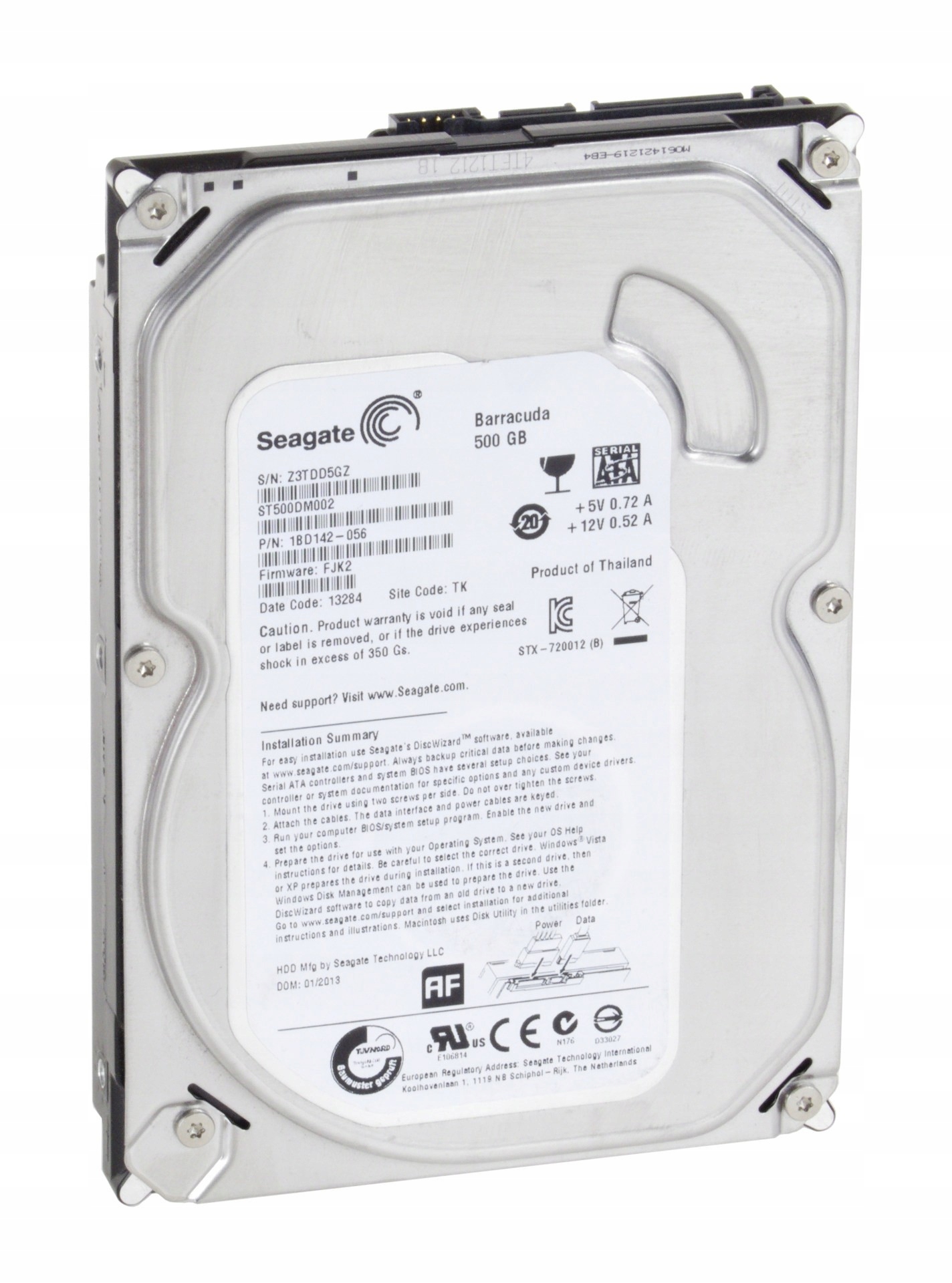 Wewnętrzny 3.5-calowy dysk twardy HDD o pojemności 500 GB, wykorzystujący interfejs SATA III (6 Gb/s). Wyposażony w 1 talerz i 2 głowice, a także 16 MB pamięci podręcznej. Prędkość obrotowa wynosi 7200 obr./min., szybkość przesyłu danych sformatowanych 6 Gbit/s, średni czas odczytu 11 ms, a średni czas zapisu 12 ms. Wykorzystuje technologię NCQ.