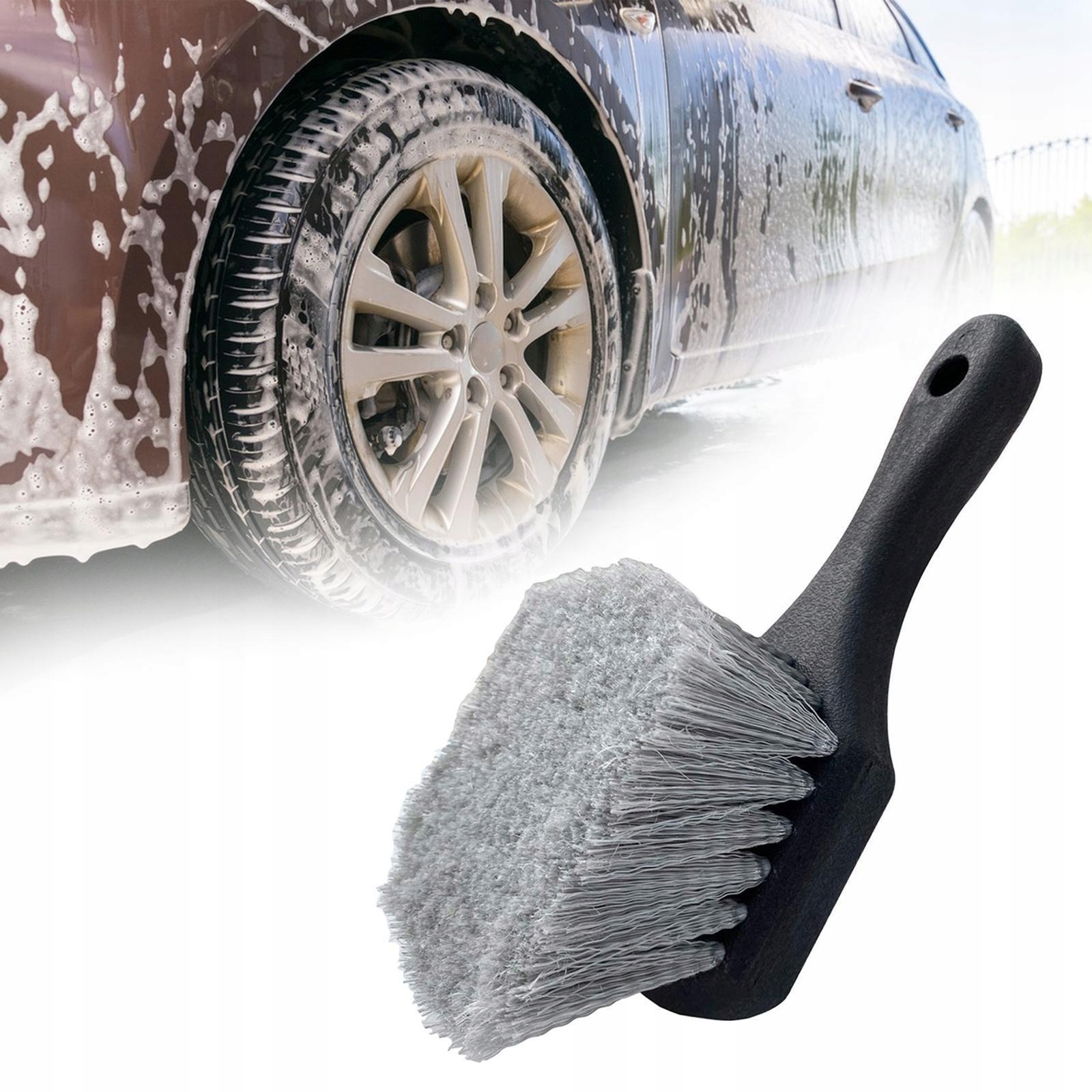 [Funkcjonalność]: Nadaje się do mycia samochodów, ta szczotka skutecznie czyści opony i piasty kół, usuwając brud.