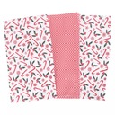 Zarówno ręczniki, jak i obszycie koszyczka uszyte są w 100% z bawełny. Materiał z jakiego są wykonane jest trwały. Ręczniki dobrze sprawdzą się w kuchni. Dodatkowym atutem jest stylowe wzornictwo, które dodatkowo przyozdobi wnętrze. Bawełna jest wysoce higroskopijna - ręczniki dobrze wchłaniają wodę. Koszyczek można wykorzystać na owoce bądź ciasteczka. Wymiar pojedynczego ręcznika to 40x70cm. Taki zestaw jest świetnym pomysłem na praktyczny upominek.