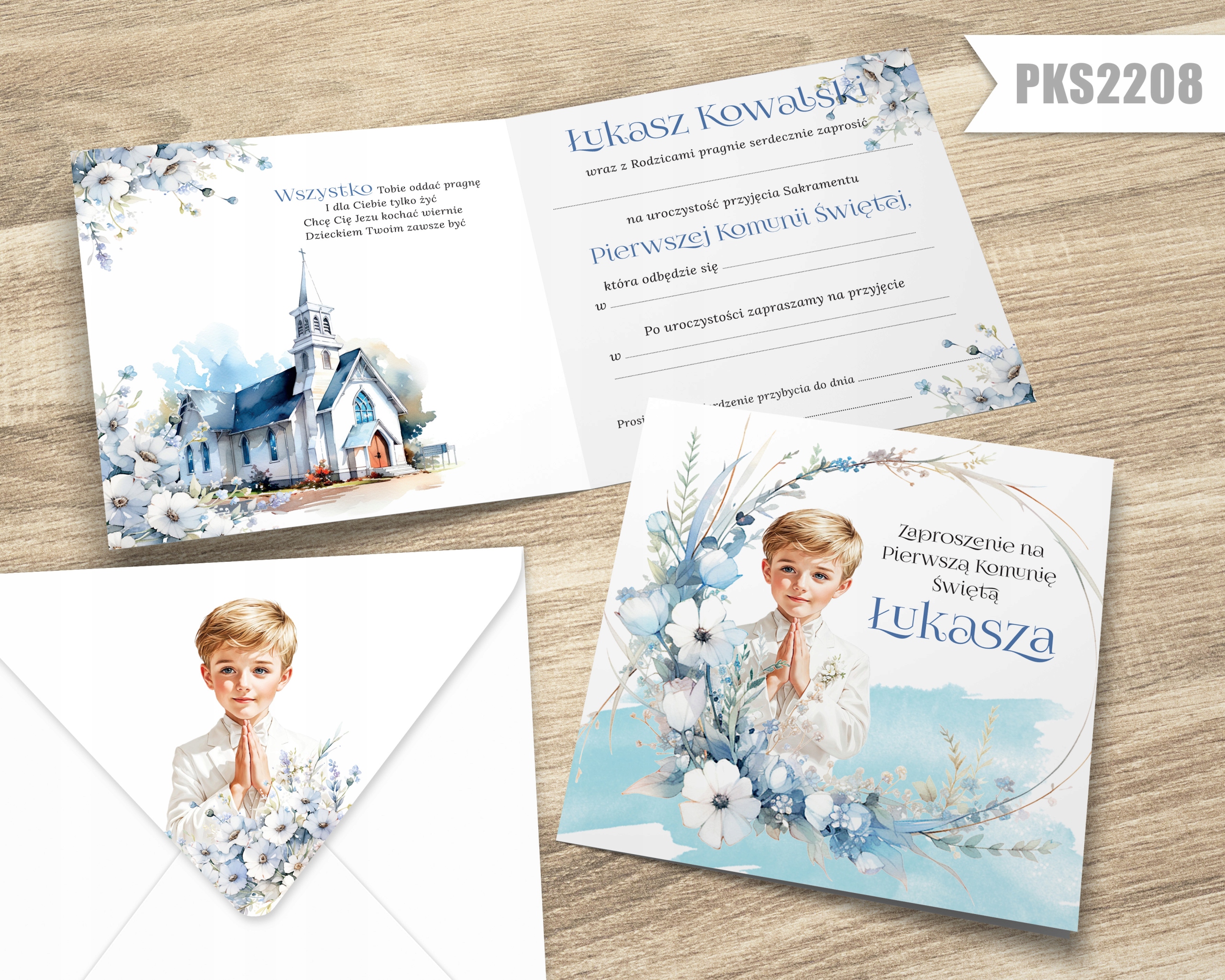 W zaproszeniach znajduje się tekst do samodzielnego uzupełnienia. Personalizacji przed drukiem podlega jedynie imię dziecka, nie ma możliwości wprowadzania jakichkolwiek zmian w prezentowanych wzorach.