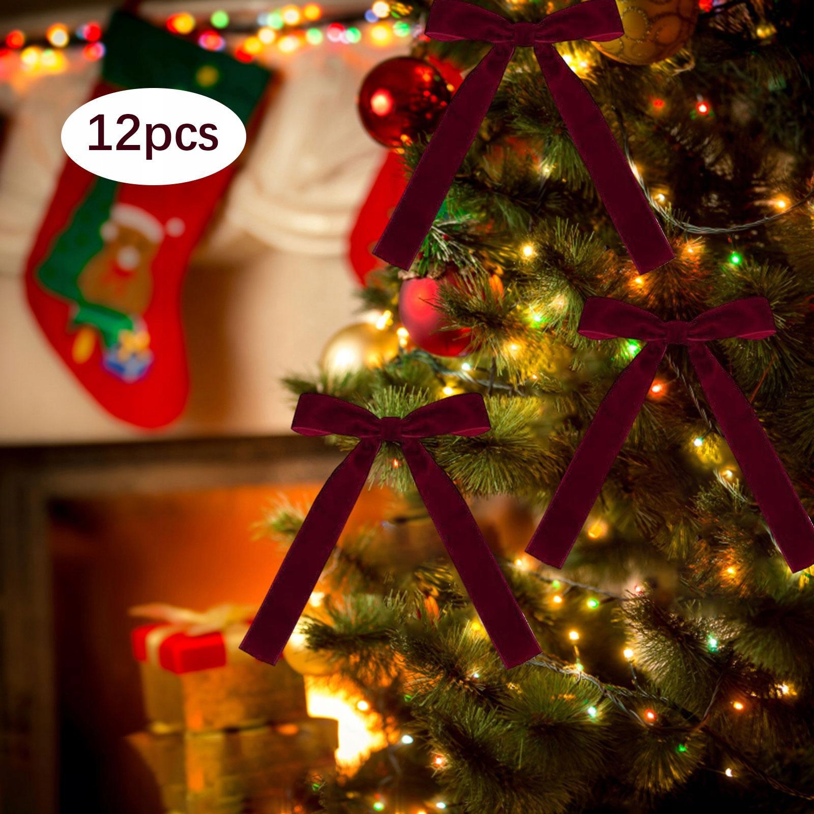 12Pcs Christmas Ribbon Bows Set Simple Christmas Ornaments for Gift Wrapping Dark Red