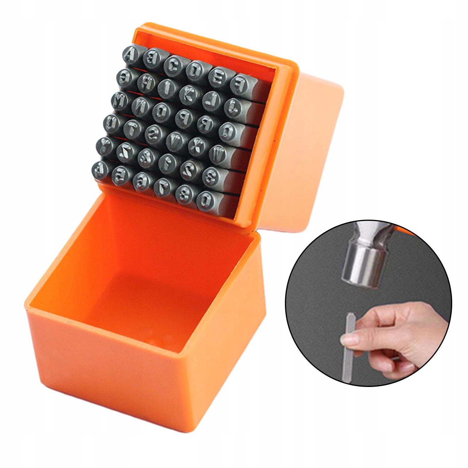 Metalowe wybijaki alfabetu są na trzpieniu kwadratowym 1/8" (3mm) lub 1/4"(6mm) do stosowania jako bity młota udarowego
