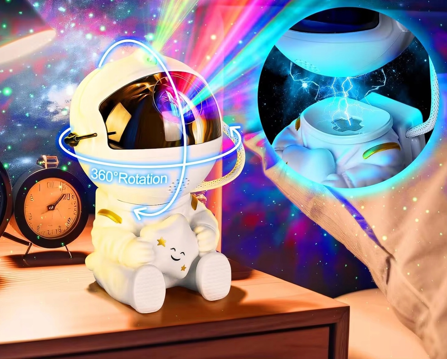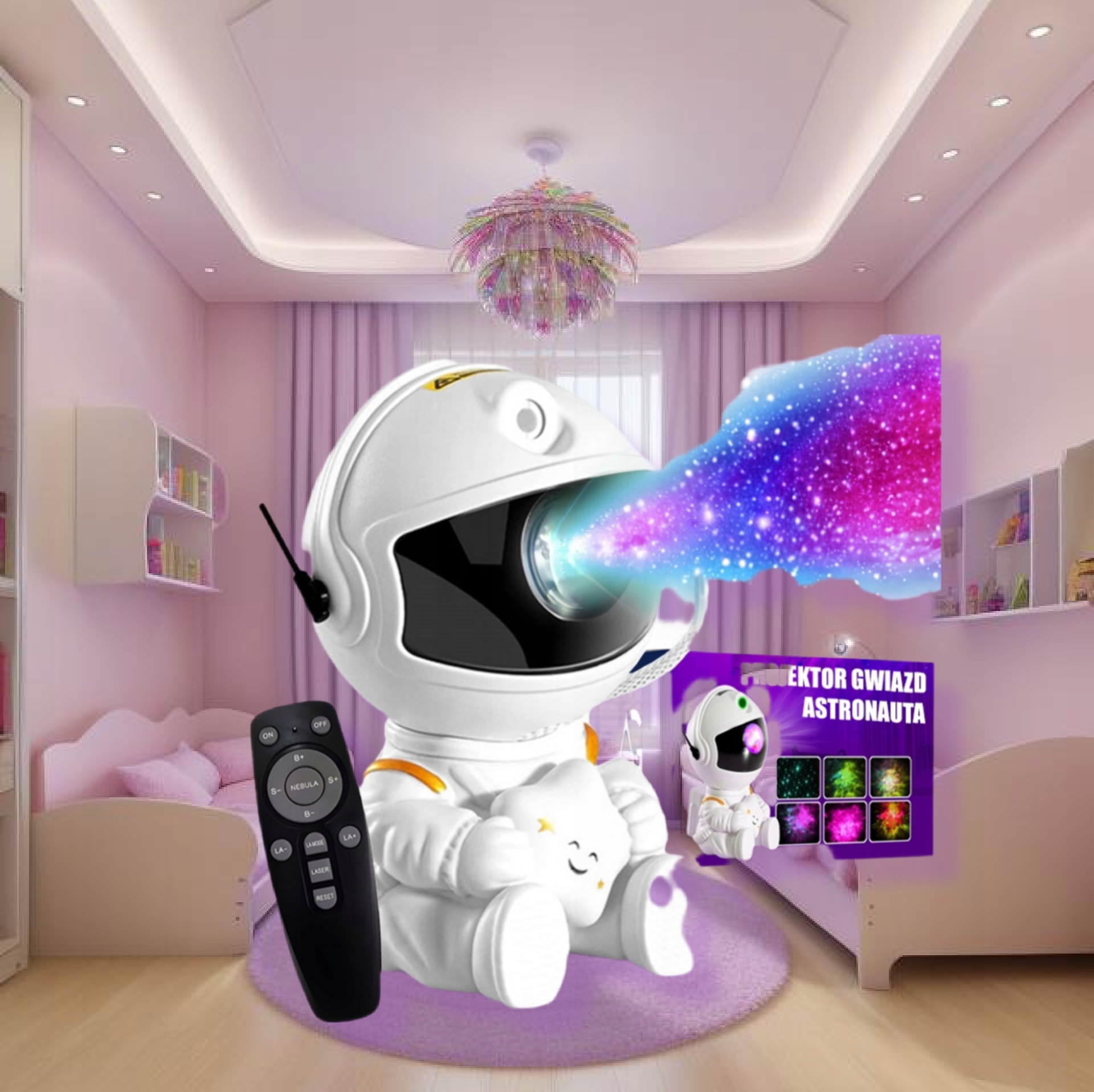 Bogata paleta kolorów z efektami mgławicy oraz laserowych gwiazd sprawi że dziecko poczuje się jak w kosmosie.