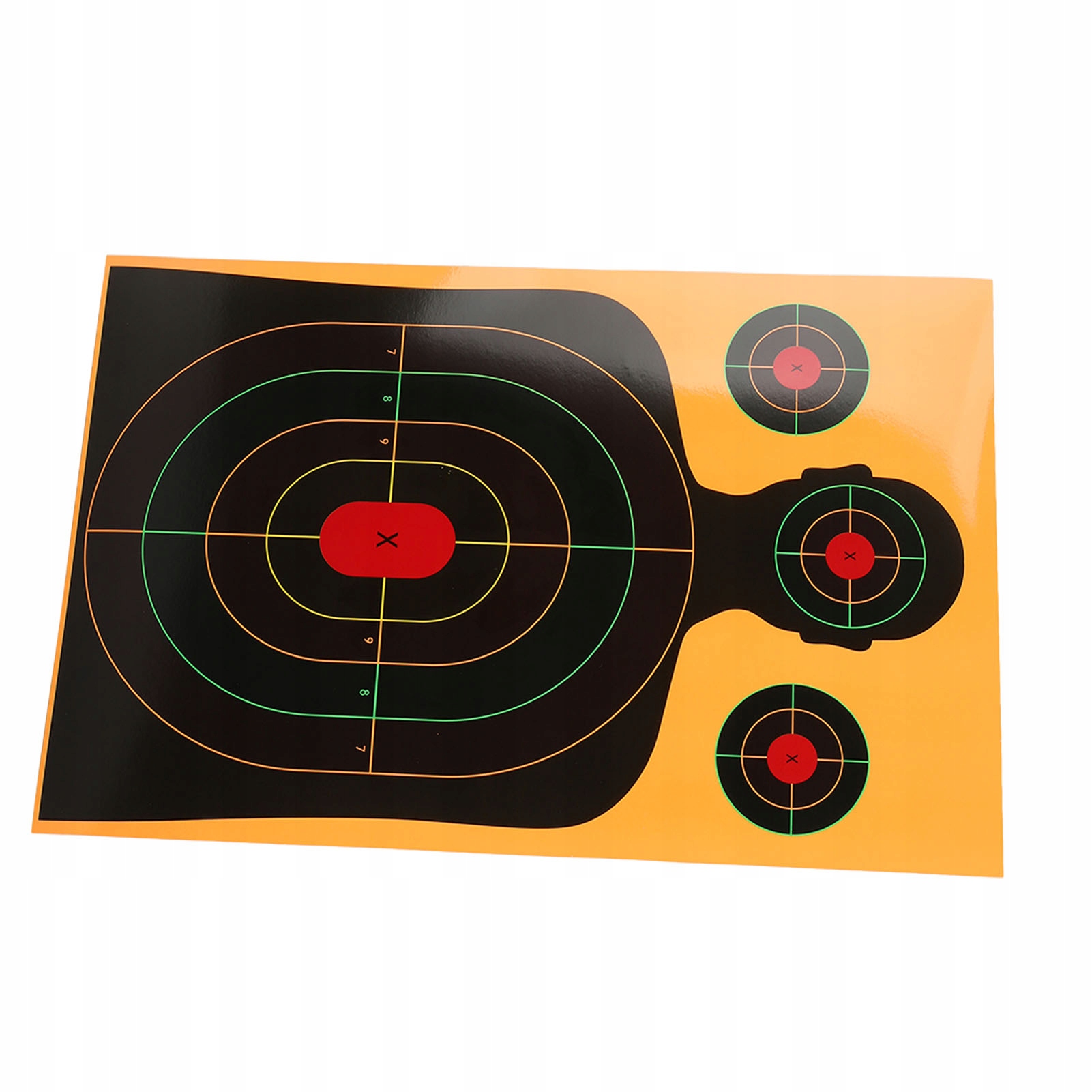1. Trzy jasne kolory: Na tarczy rozpryskowej znajdują się trzy jasne kolory rozprysków, a każdy pierścień strzelecki ma inny kolor. Po trafieniu w cel wyraźnie widać kolory tła: fluorescencyjny żółty, fluorescencyjny pomarańczowy i fluorescencyjny zielony. Otwory mogą zapewnić lepszą informację zwrotną i zwiększyć przyjemność z fotografowania