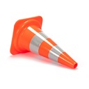Profesjonalny pachołek drogowy 50 cm wykonany z wysokiej jakości miękkiego PCV, przeznaczony do oznaczania miejsc niebezpiecznych, robót drogowych, parkingów oraz treningów sportowych.