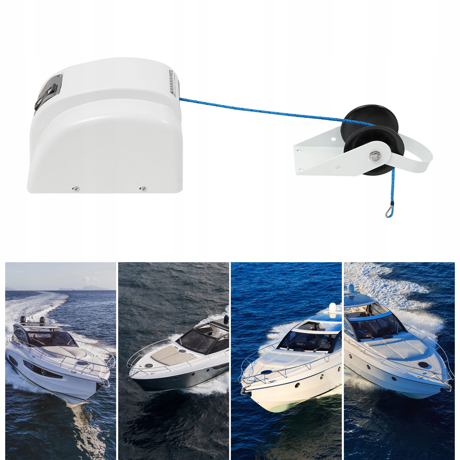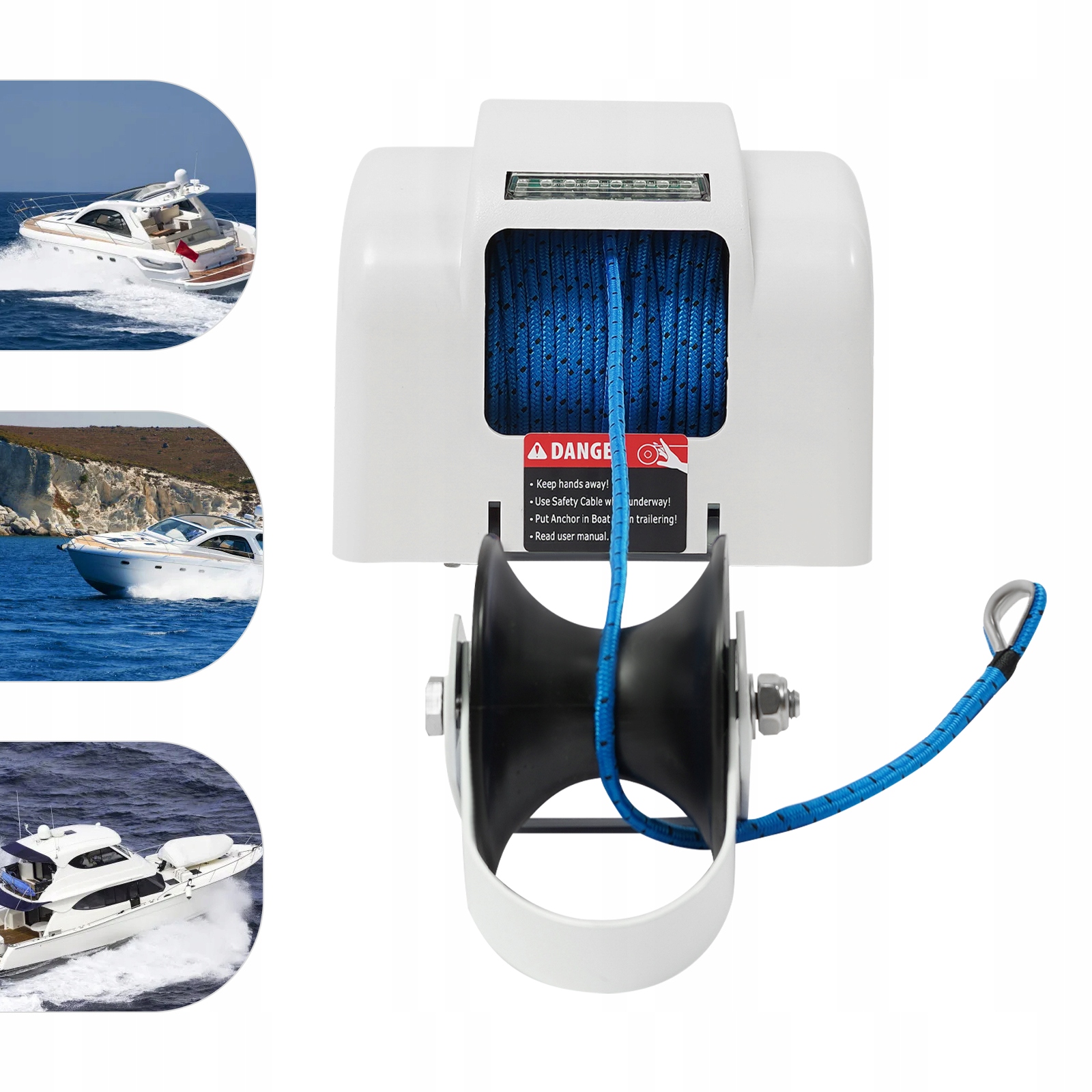 Łatwa obsługa: Posiada hermetyczny przełącznik i pilot zdalnego sterowania, które umożliwiają łatwe i płynne sterowanie podnoszeniem i lądowaniem kotwicy. Ponadto pilot zdalnego sterowania można zamontować na sterze lub w innym dogodnym miejscu.