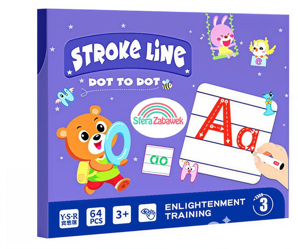 Zestaw wspiera rozwój motoryki małej poprzez precyzyjne rysowanie po śladzie, co jest kluczowe w nauce pisania.
