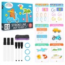 Dołączone do zestawu pisaki suchościeralne pozwalają na wielokrotne wypełnianie zadań, a gąbeczka z łatwością wszystko usuwa.