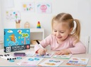 Całość została zaprojektowana z myślą o najmłodszych – karty mają zaokrąglone rogi, a dołączone pisaki są w 100% bezpieczne i nietoksyczne.
