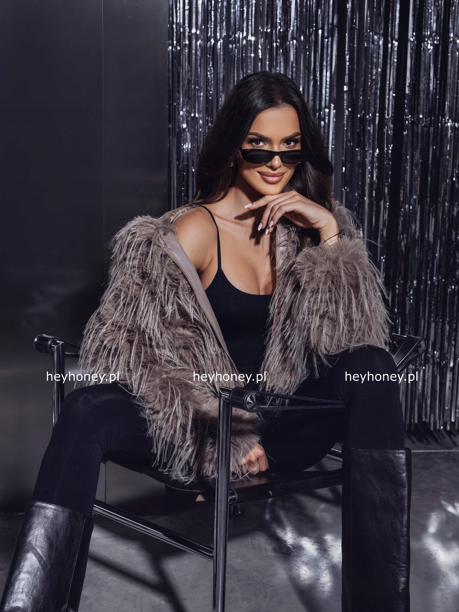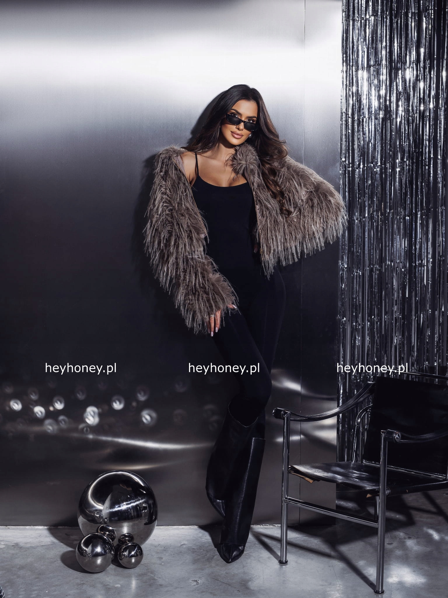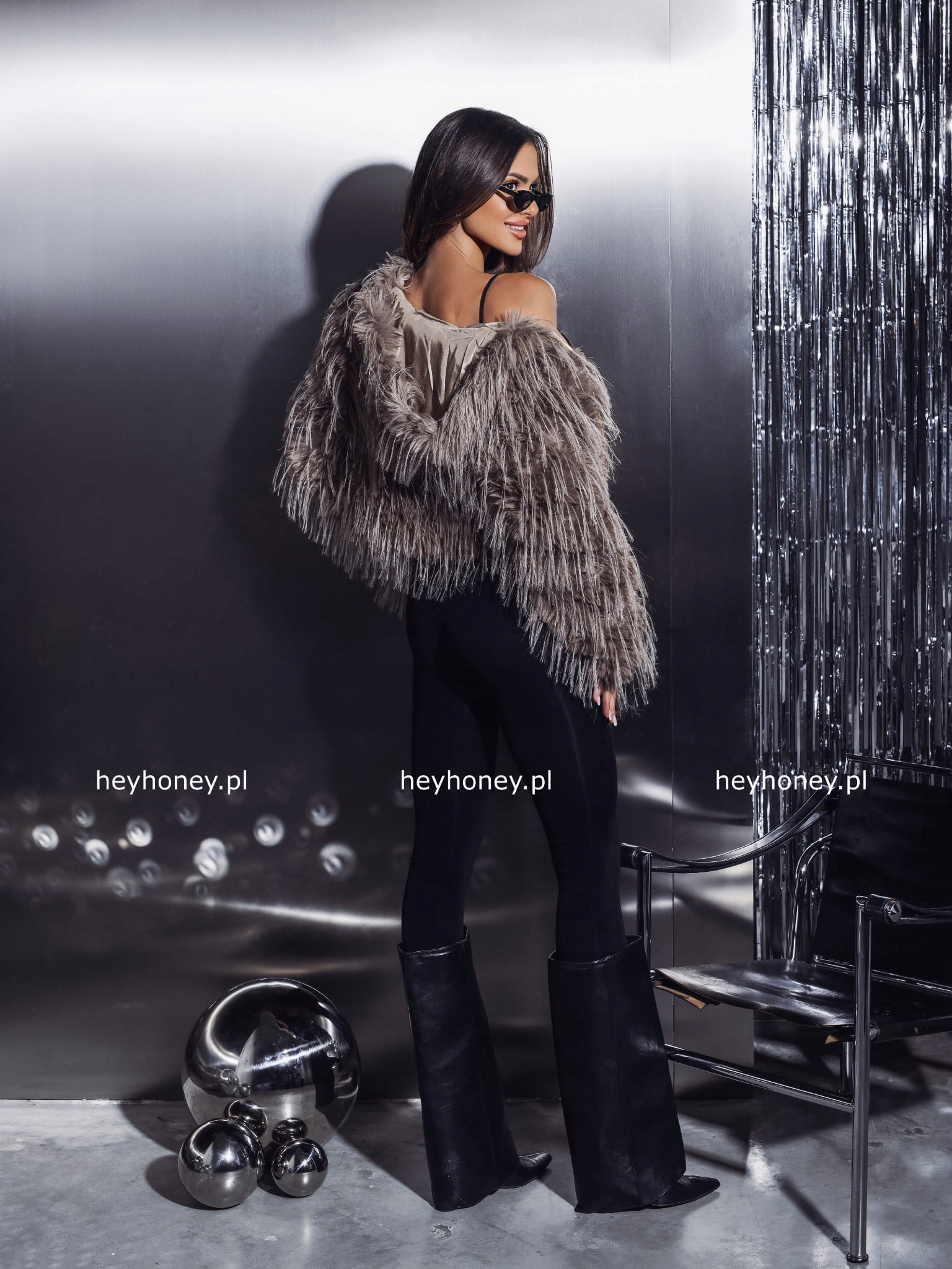 Modelka ma 174 cm wzrostu oraz model do prezentacji S/M.