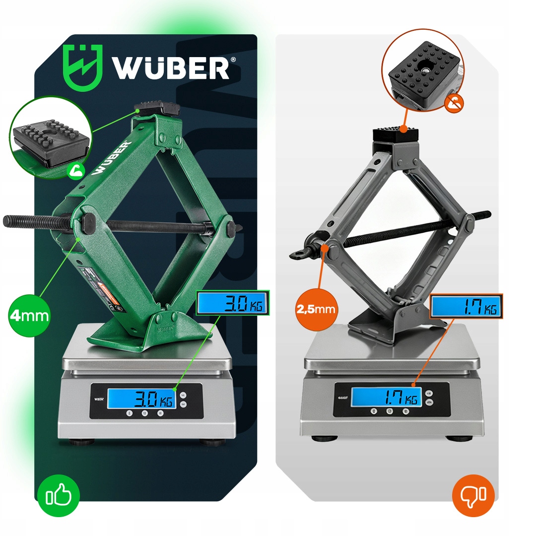 ✅ Udźwig - kompaktowe urządzenie, które bez problemu zmieści się w bagażniku, może podnieść pojazd o masie do 2 ton, dzięki czemu doskonale sprawdzi się przy samochodach osobowych.