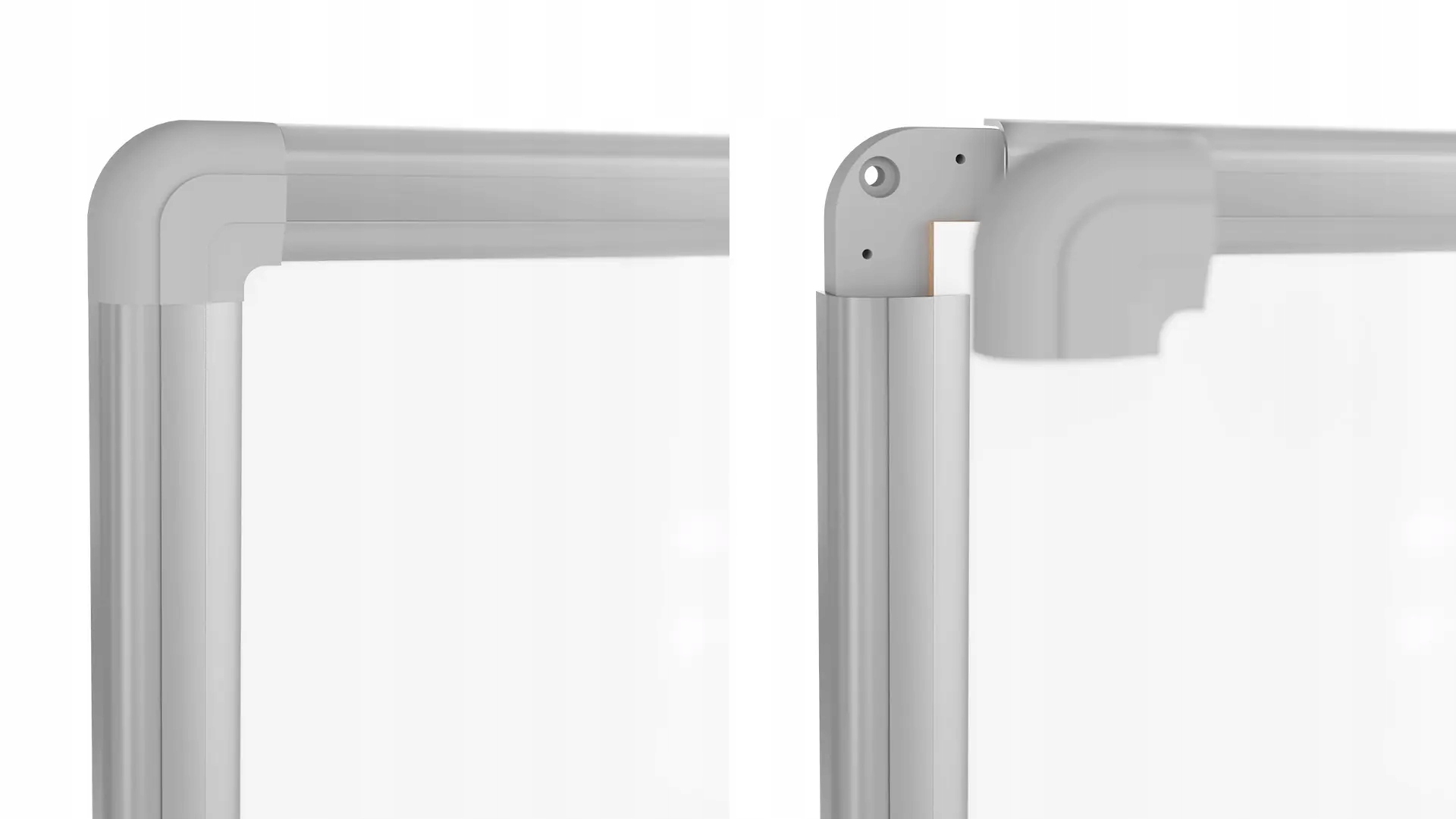 Tablica ALLboards otoczona jest elegancką, szarą, aluminiową ramą PREMIUM EXPO. Rama została zabezpieczona przed korozją w procesie anodowania. Anodowanie to proces, w czasie którego na powierzchni metalu wytwarza się warstwa tlenku glinu. Dzięki niemu powierzchnia ramy zostaje nie tylko zabezpieczona przed korozją ale także staje się gładka i lśniąca. Mimo wielkiej wytrzymałości, szerokość ramy to zaledwie 2 cm.