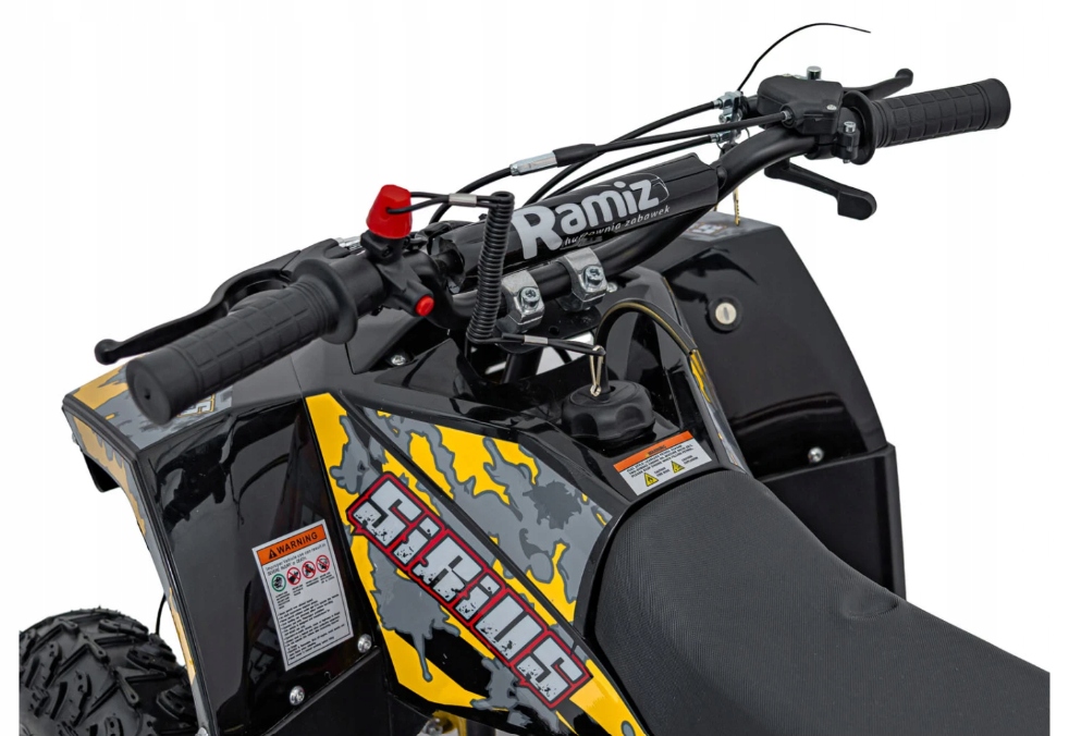 Tabliczka znamionowa z numerem silnika i serią produkcji umożliwia łatwą identyfikację pojazdu, co jest dodatkowym zabezpieczeniem. Komfort jazdy quadem 49CC SIRIUS jest na najwyższym poziomie, dzięki zastosowaniu pompowanych kół z grubym bieżnikiem, a także miękkiego siedziska, pokrytego wodoodpornym materiałem.