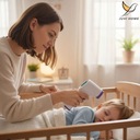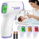 Termometr działa z odległości do 5 cm od czoła, co eliminuje ryzyko przenoszenia zarazków. Bezinwazyjny pomiar pozwala kontrolować temperaturę nawet u śpiących dzieci.