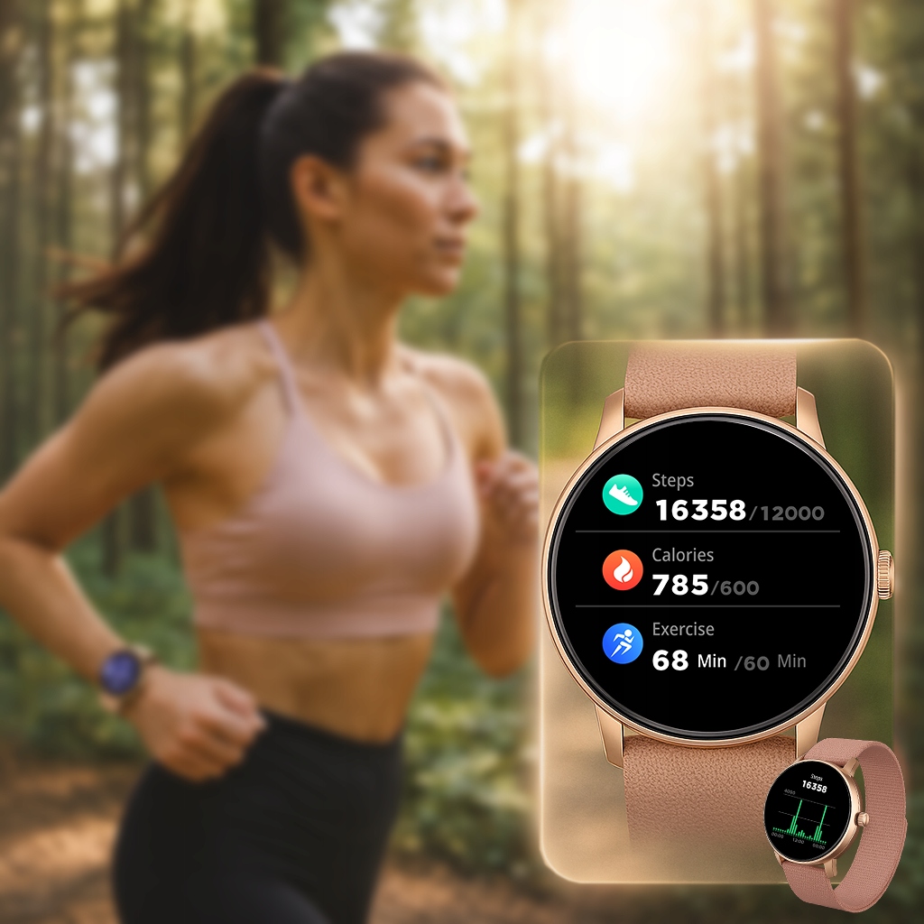 ✅ Duży dotykowy ekran AMOLED 1,42"