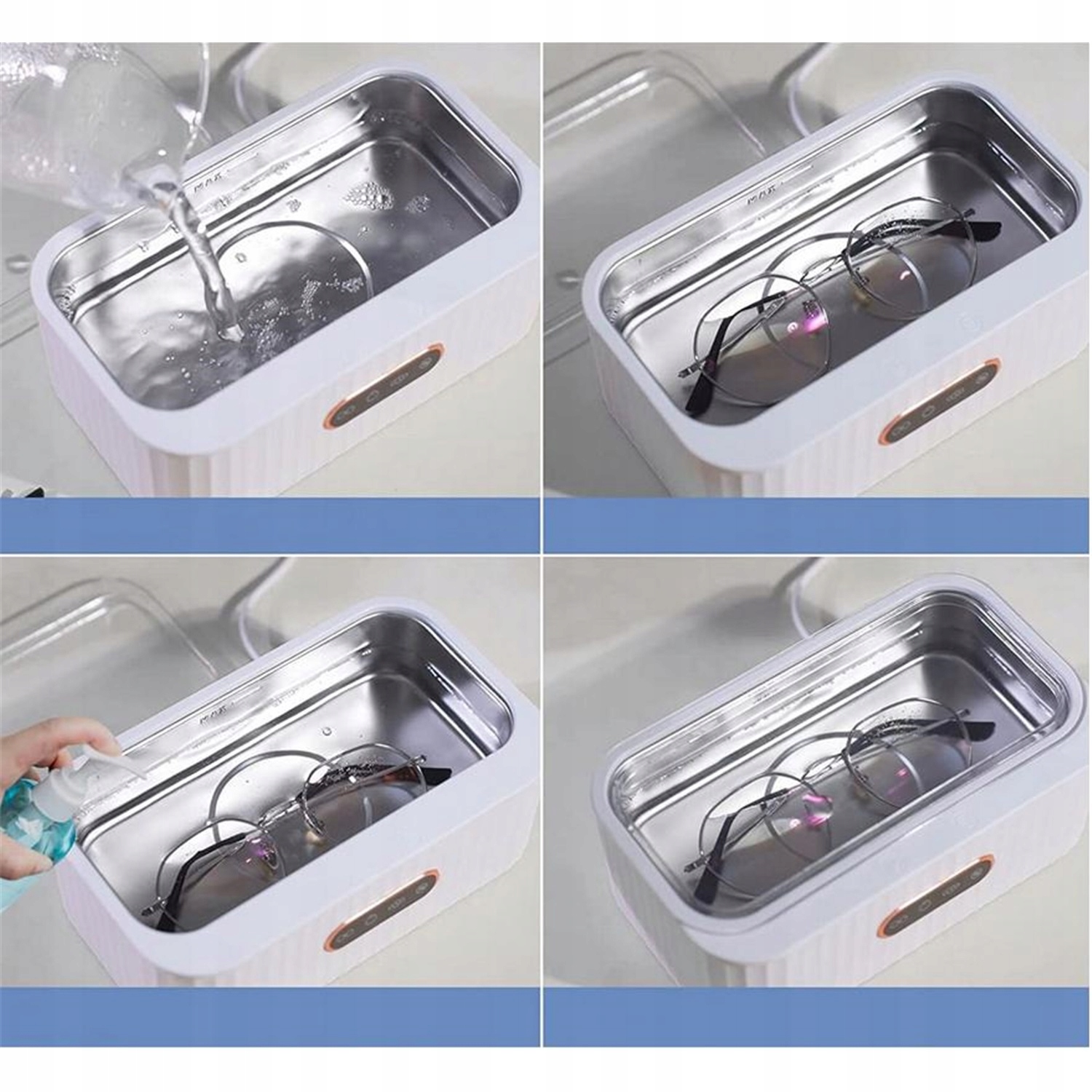 👓Technologia ultradźwiękowa: Szybko usuwa brud z małych szczelin, przywracając blask biżuterii, okularom i innym przedmiotom.