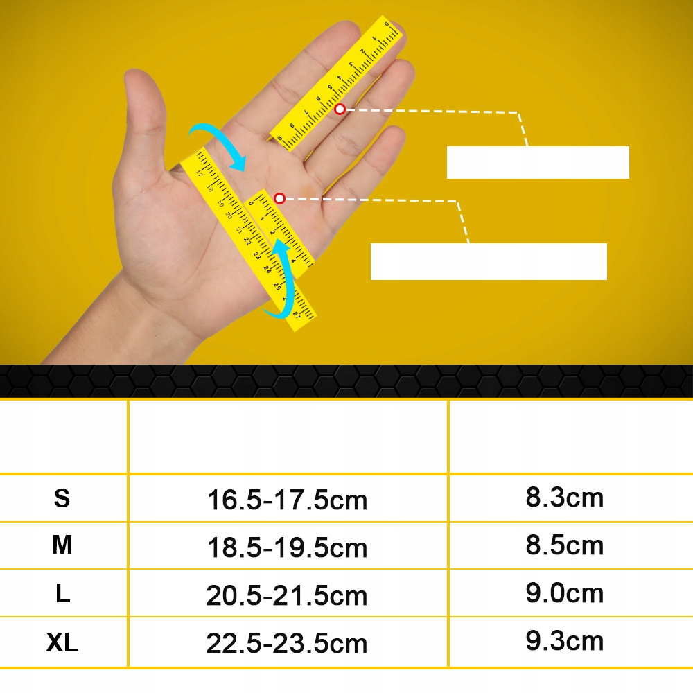 Długość palca środkowego kolumna po prawej, obwód dłoni kolumna po lewej