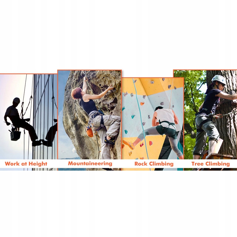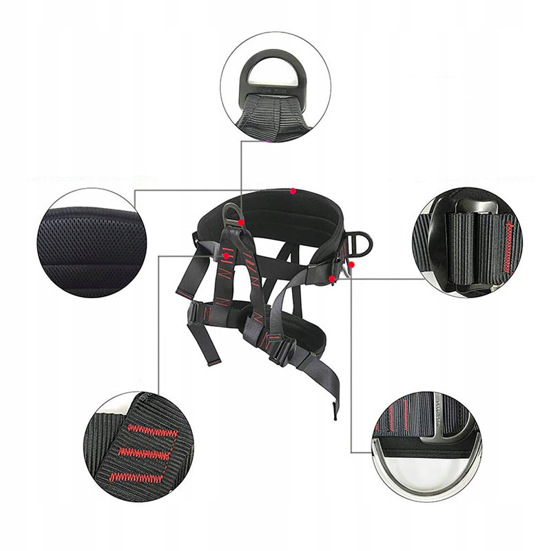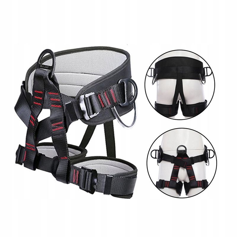 2 pętle sprzętowe i 2 pierścienie D z boku pasa uprzęży, haczyki sprzętowe są bardzo trwałe i wygodne do zawieszenia worka na magnezję lub innego sprzętu wspinaczkowego i nigdy nie utrudniają wspinaczki. Pierścienie D o wysokiej wytrzymałości chronią Twoje bezpieczeństwo podczas wspinaczki. Wytrzymała czarna klamra pozwala na szybką i łatwą regulację pasa biodrowego i nogawkowego.
