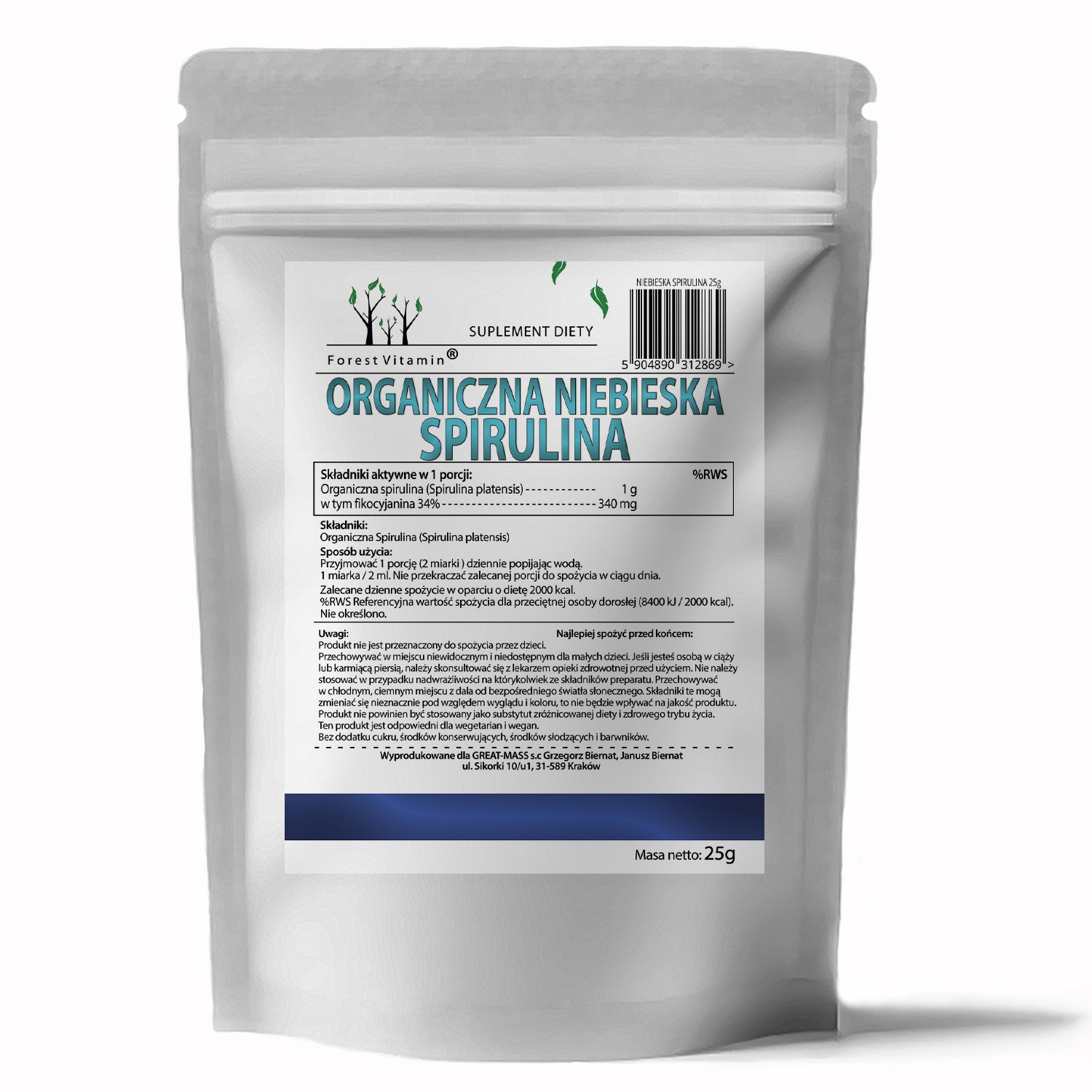 Forest Vitamin® Organiczna Niebieska Spirulina to najwyższej jakości suplement diety w proszku, pozyskiwany z czystych ekologicznie upraw Spirulina platensis. Zawiera aż 34% fikocyjaniny – naturalnego niebieskiego barwnika o silnych właściwościach antyoksydacyjnych i wspierających odporność. Idealna dla osób dbających o zdrowie, energię i naturalne oczyszczanie organizmu