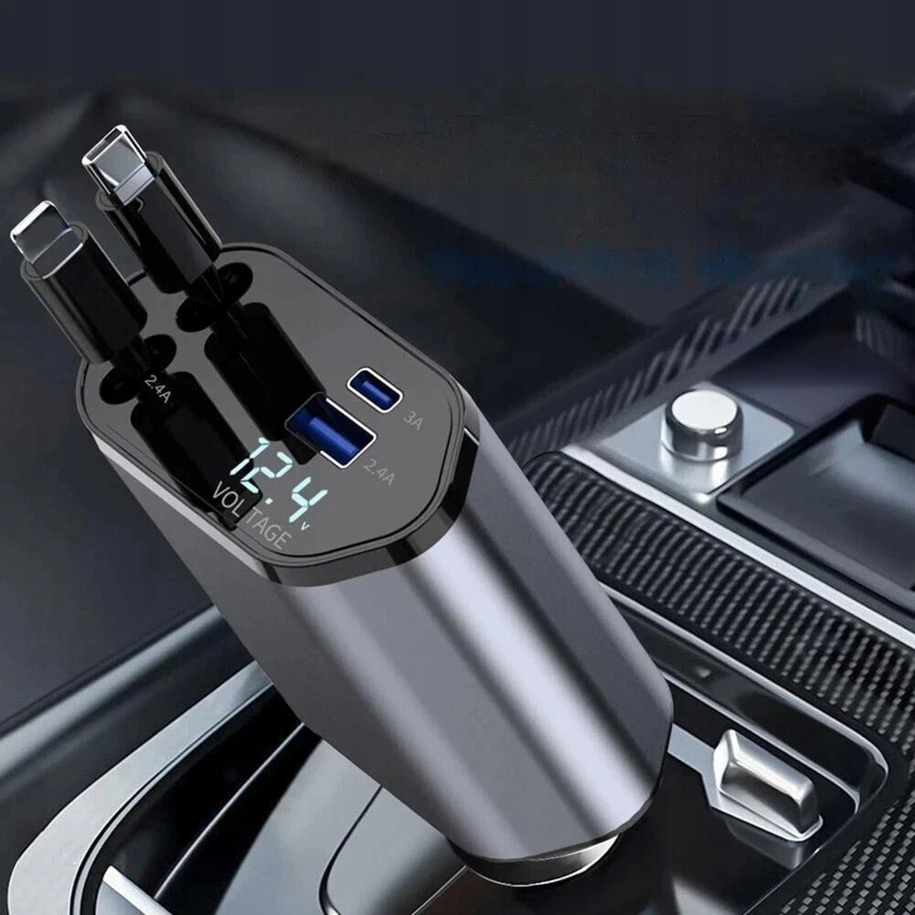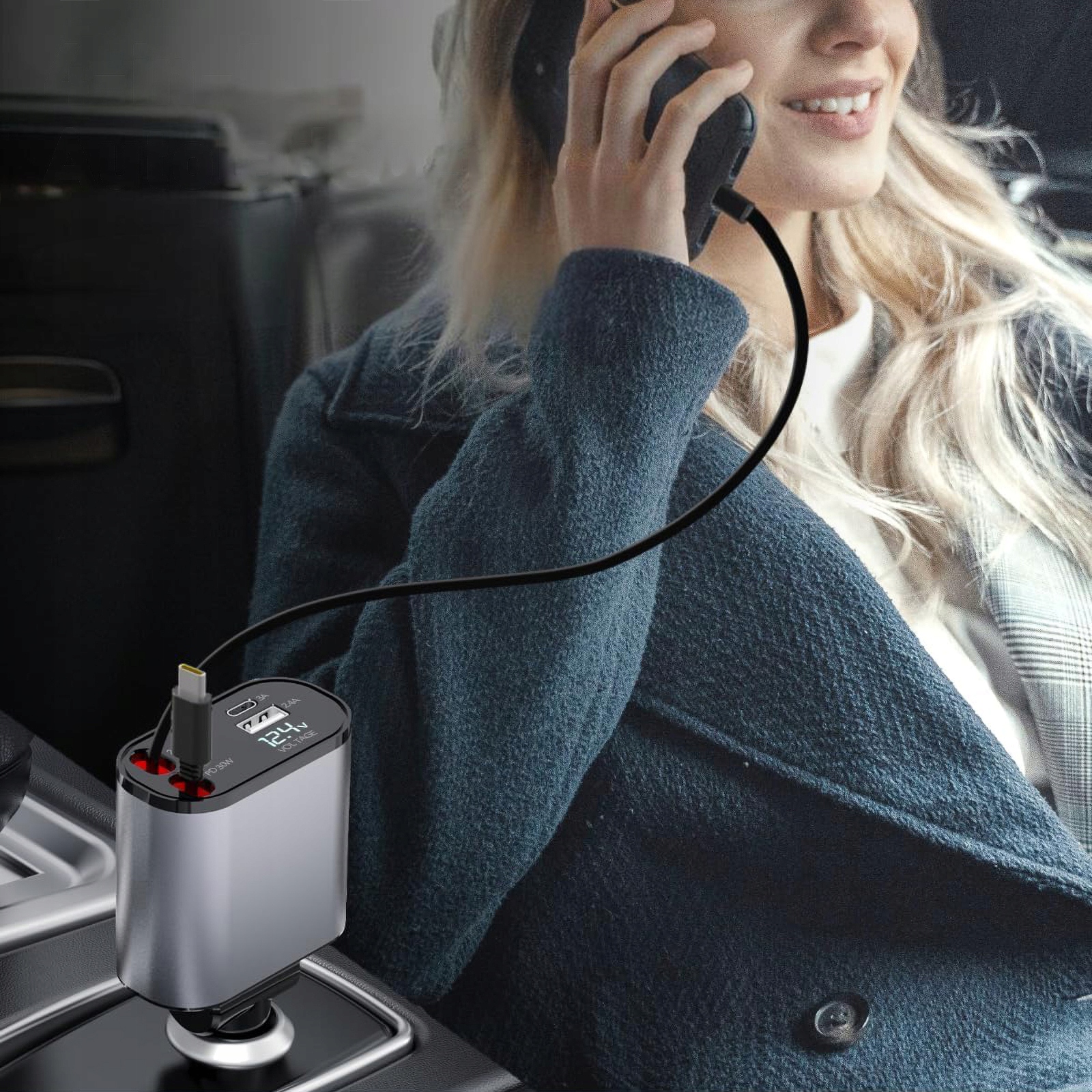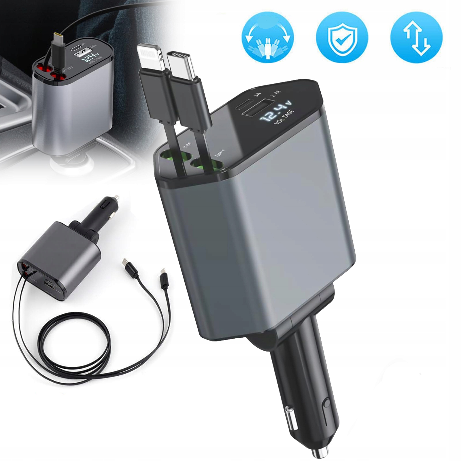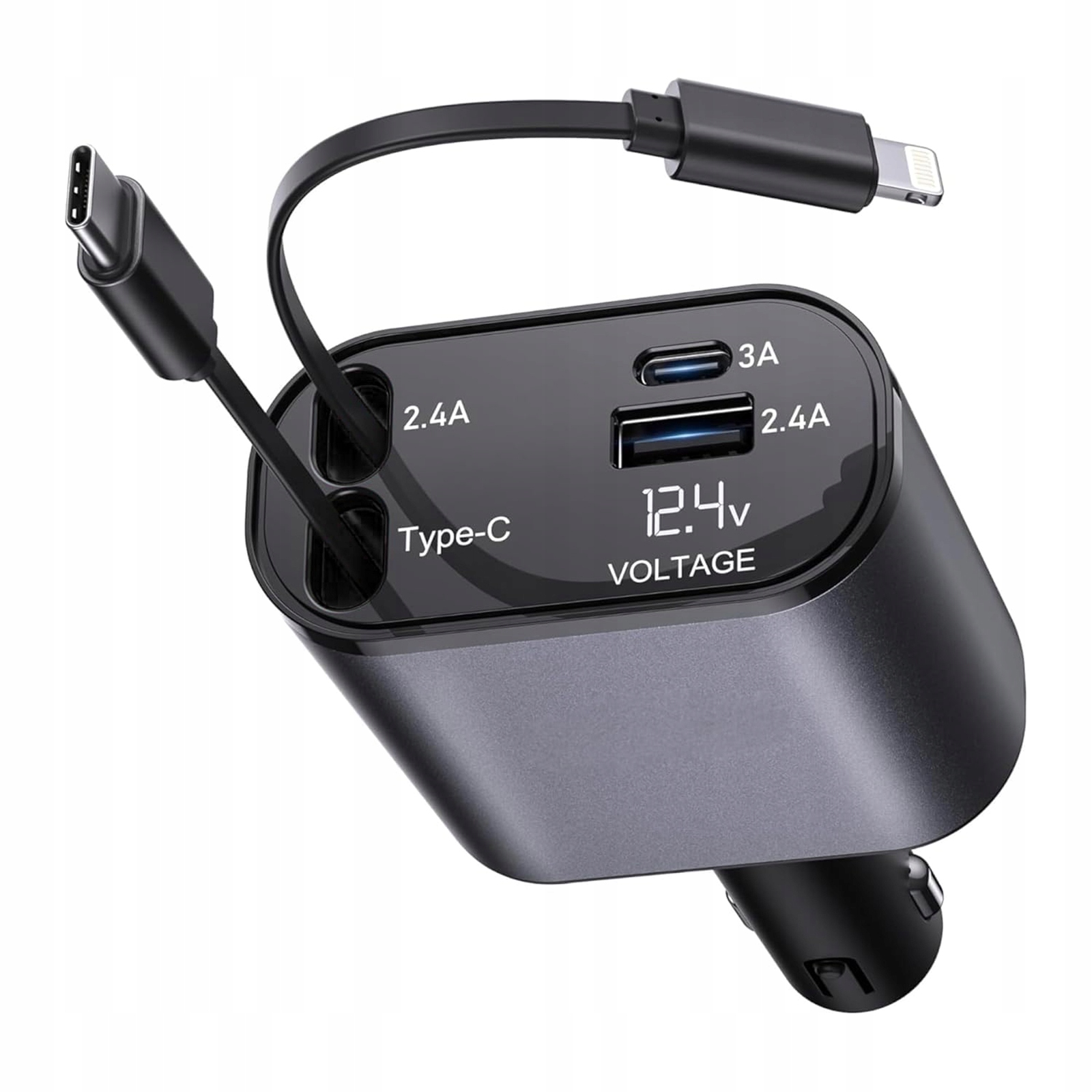 ☀️【2 zwijane kable】Zwijana ładowarka samochodowa rozciąga się do 80 cm/31,5 cala i automatycznie chowa się do samochodowego adaptera USB, zapewniając schludne przechowywanie. Wystarczy ją wyciągnąć, gdy jest gotowa do użycia, i schować później. Dzięki temu w samochodzie panuje porządek, bez splątanych kabli.