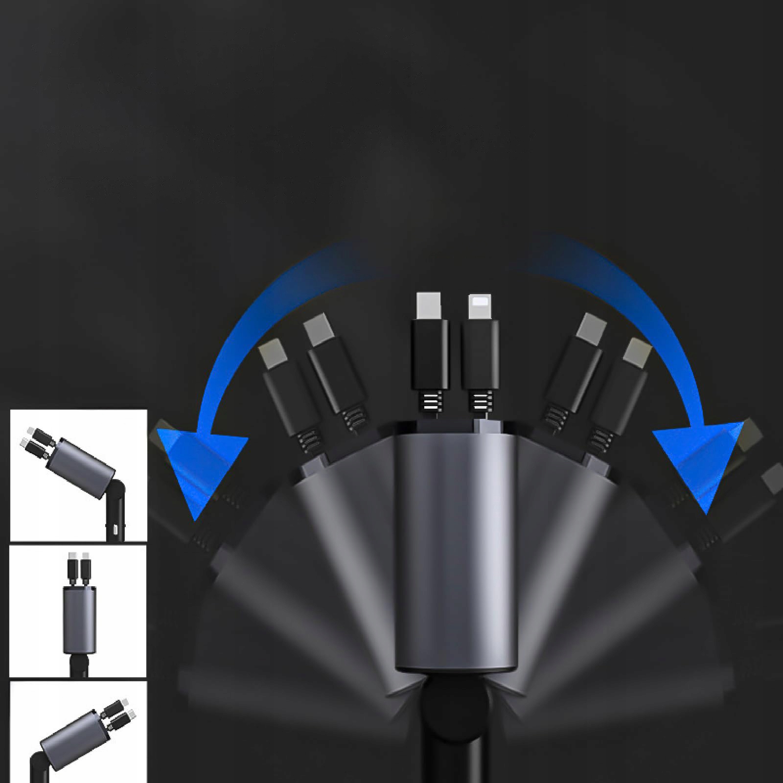 ☀️【4 kable ładujące】Szybka ładowarka USB-C do iPhone'a umożliwia szybkie ładowanie do 4 urządzeń jednocześnie. Zawiera 2 zwijane kable (typu C i Lightning) z 7 regulowanymi ustawieniami długości, a także 1 port USB-A i 1 port USB-C.