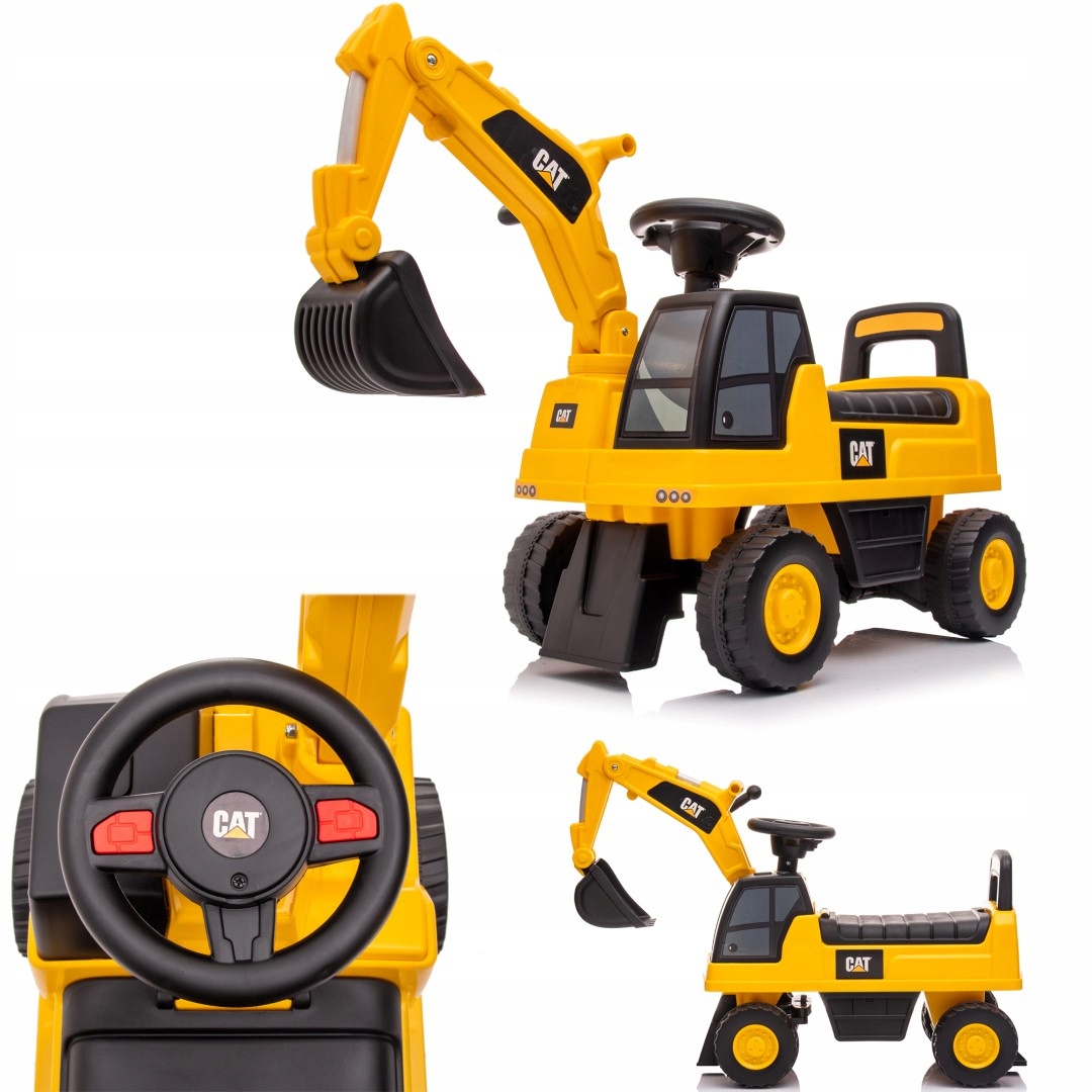 Żółty jeździk CAT to solidny, bezpieczny pojazd dla najmłodszych fanów maszyn budowlanych. Łączy w sobie funkcje pchacza, koparki i samochodu — gwarantując świetną zabawę i wspierając rozwój motoryczny dziecka. Idealny dla maluchów od 12 miesiąca życia.