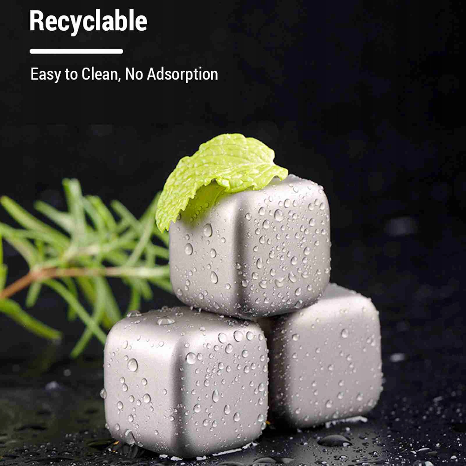 1. Przyjazny dla jedzenia czyste ti: Wykonane z czystego ti, te kostki lodu są trwae, wielokrotnego użytku i nigdy nie będą rdzewieć ani korodować. W przeciwieństwie do stali nierdzewnej powierzchnia kostki Ti jest matowa, bez farby lub powoki. Brak zanieczyszczeń w napoju.