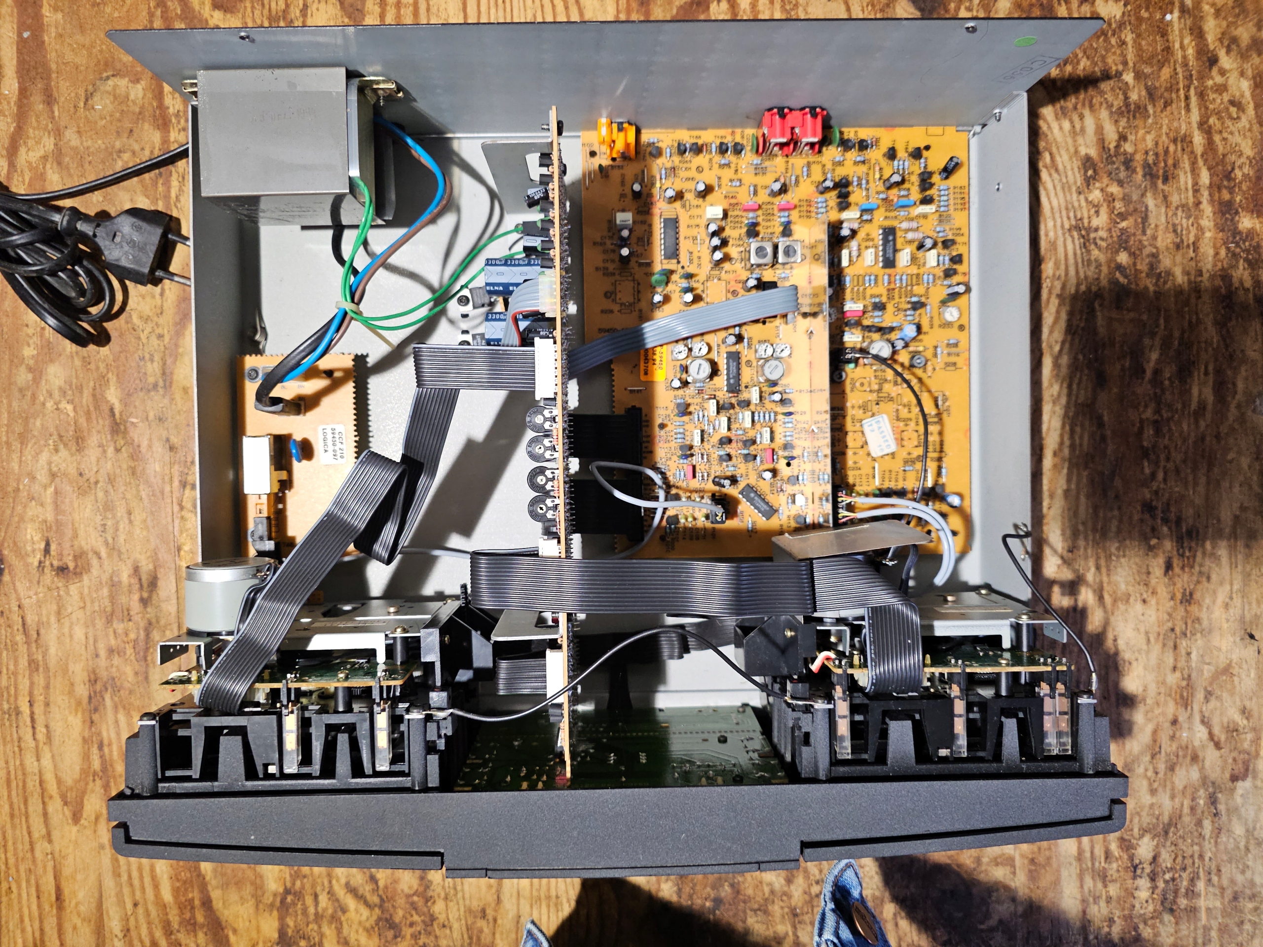 Deck odtwarza w obu kieszeniach w obu kierunkach. Lewa kieszeń przewija w obu kierunkach natomiast prawa ma problem z przewijaniem w przód raz przewija ale częściej się zatrzymuje odrazu po naciśnięciu. Stan jak na zdjęciach.