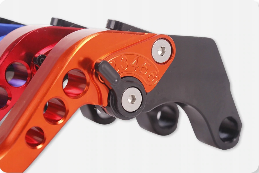 Дверные ручки изготовлены по технологии ЧПУ из алюминия. Цвет был дан в процесс выцветание. Шестиступенчатая регулировка отклонения ручек от переключателей позволяет устанавливать их по ваших предпочтений. Гладкий профиль дверных ручек улучшает комфорт использования. Короткие ручки приспособлены они предназначены для спортивной езды "на 2 пальца", что позволяет быстрее реагировать.