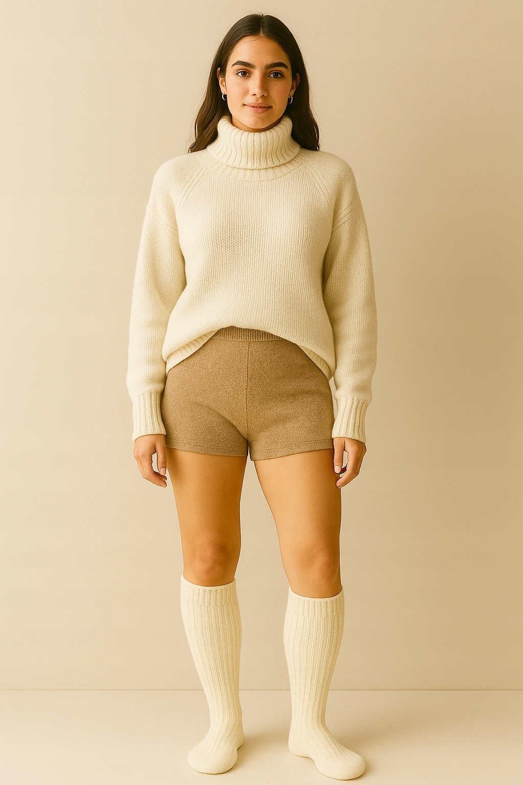 Wełna merino słynie z doskonałych właściwości termoregulacyjnych – grzeje w chłodne dni, a jednocześnie pozwala skórze oddychać, zapewniając uczucie świeżości przez cały dzień.