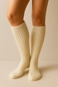 Delikatny ściągacz utrzymuje podkolanówki na miejscu, nie uciskając nogi, a elastyczny materiał gwarantuje idealne dopasowanie do kształtu łydki.