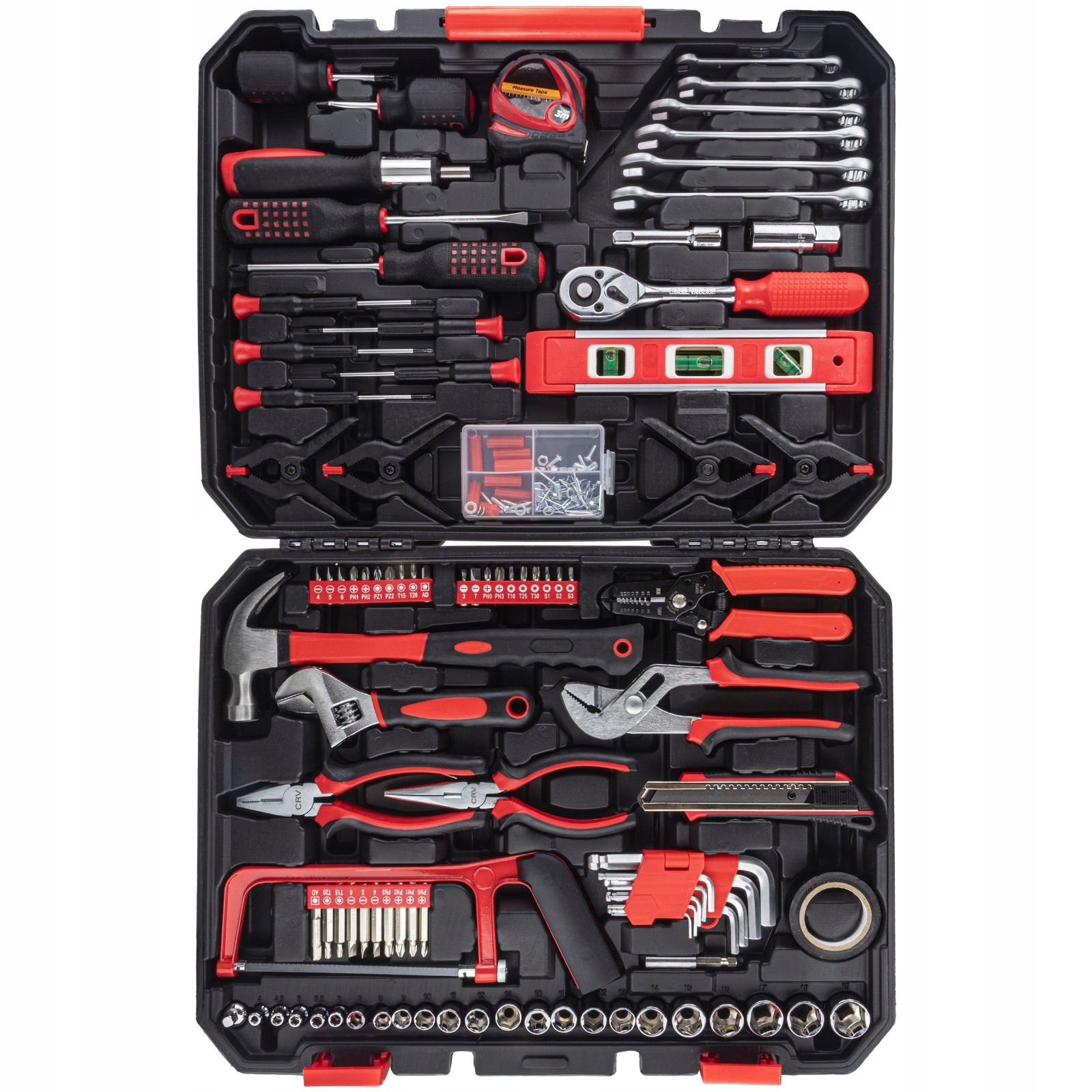 ⭐ Включает в себя отвертки, плоские гаечные ключи, рым-ключи, колпачки, молоток, спиртовой уровень, комбинированные плоскогубцы, биты, пилу, разводной ключ и многое другое-идеально подходит для ремонта, сборки мебели, DIY работ.