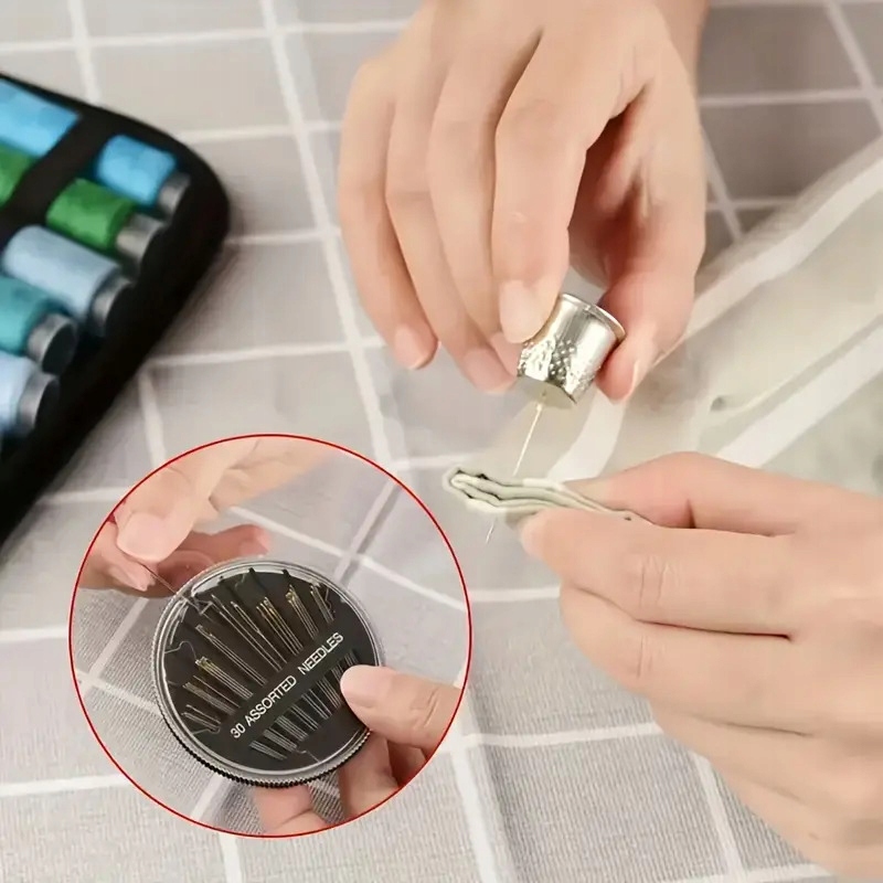 Zestaw do szycia wszystko w jednym – ten podróżny zestaw do szycia zawiera wszystkie potrzebne narzędzia do szycia, w tym 38 wysokiej jakości szpul nici XL, igły, guziki, szpilki, haczyk, naparstki, ołówek, nawlekacze, guziki, szpilki do szycia, nożyczki, lupę, taśmę pomiarową itp. Dzięki temu zestawowi do szycia nie martw się o rozdarcia, rozdarcia, dziury, rozplątywane obszycia, brakujące guziki i inne awaryjne naprawy odzieży. Najlepszy profesjonalny zestaw do szycia.
