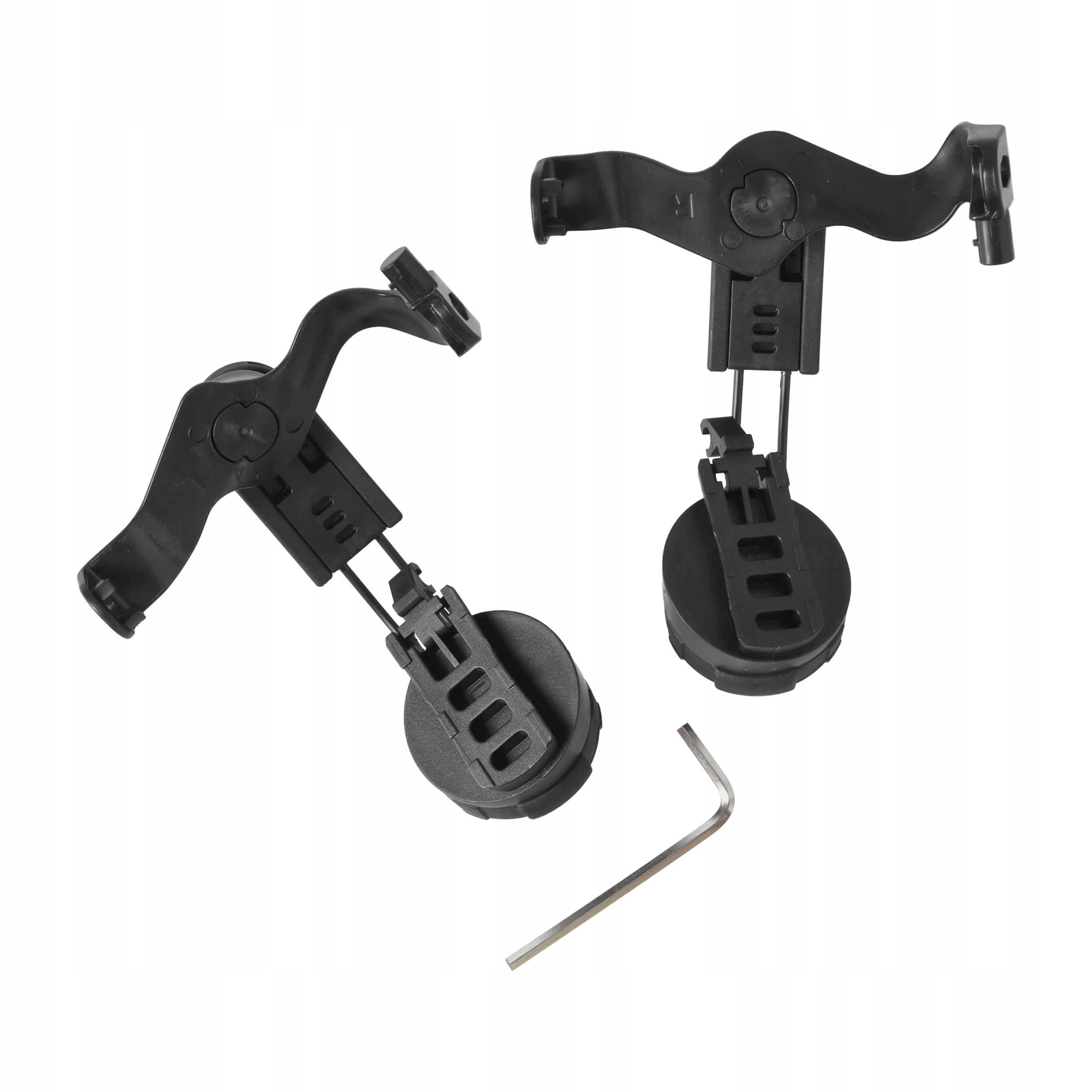 Adaptery zostały zaprojektowane tak, aby umożliwiały pełną rotację ochronników względem hełmu. Oznacza to, że użytkownik może łatwo odchylić słuchawki w razie potrzeby, bez konieczności ich zdejmowania. Dzięki temu dostęp do dodatkowych akcesoriów – takich jak noktowizja czy latarki montowane na hełmie – jest szybki i wygodny. To praktyczne rozwiązanie, które zwiększa efektywność działania w dynamicznych sytuacjach taktycznych.
