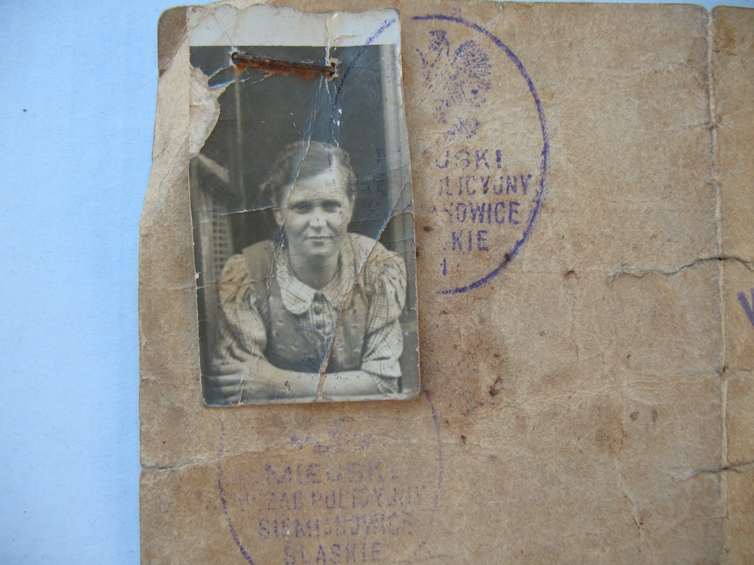 Stary, oryginalny dokument: Tymczasowy Dowód Osobisty / Vorlaugiger Ausweis / wystawiony w Pszczynie / Pless /. Oryginał. Na rewersie oryginalna fotografia i pieczątki z orłem w koronie Urzędu Policyjnego w Siemianowicach Śląskich. Datowanie: 1942 r. Wymiary: 75 x 104 mm. Stan zachowania: według mnie +dst, zabrudzenia, zagięcia i nadgięcia, naddarcia, wszystko widoczne na skanach. Zapraszam do zakupów.