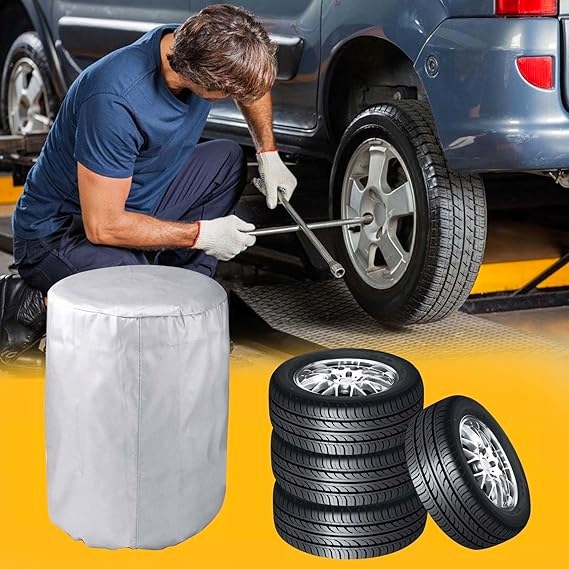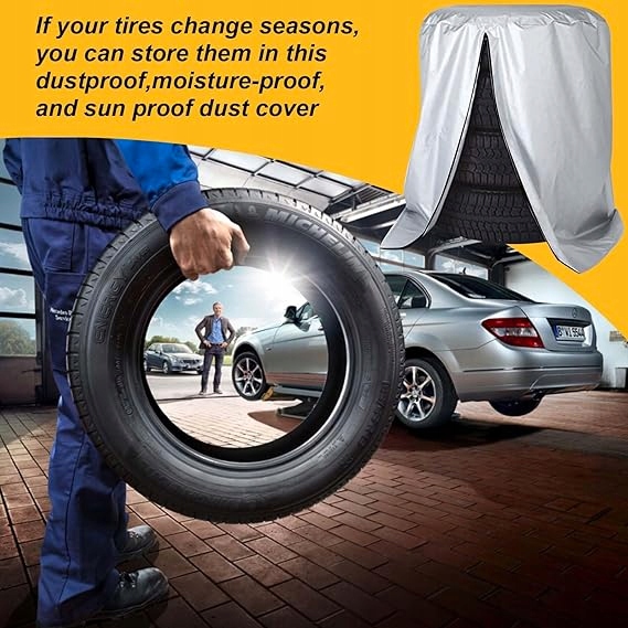Wytrzymała osłona na opony wykonana z tkaniny poliestrowej Oxford ze srebrną powłoką, wodoszczelna i odporna na rozerwanie. Chroni opony przed słońcem, deszczem, śniegiem, wiatrem, kurzem i brudem przez cały rok. Zamek błyskawiczny i regulowany sznurek ze stoperem zapewniają szybki i pewny montaż. Uniwersalne dopasowanie do opon do 29 cali (nie dotyczy felg). Idealna do przechowywania zapasowych opon w domu lub garażu. 🚗🧰