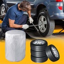 Pokrowiec układa się w stos, bez potrzeby dodatkowego miejsca. Wymiary opakowania: 26,7 x 23,6 x 3,8 cm; waga ok. 290 g. Materiał: poliester; kolor: srebrno-czarny. W zestawie 1 osłona na opony sezonowe o średnicy do 29 cali. Pasuje do samochodów, SUV-ów, ciężarówek i kamperów.