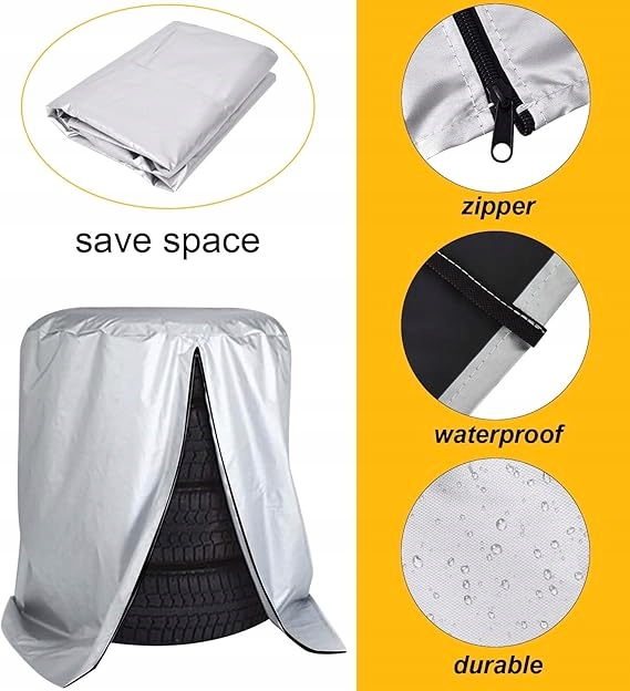 Produkt przeznaczony do ochrony opon sezonowych do średnicy do 29 cali. Wykonana z wytrzymałego poliestrowego Oxfordu z srebrną powłoką, wodoszczelna i odporna na rozerwanie. Chroni przed słońcem, deszczem, śniegiem oraz kurzem. Montaż beznarzędny: zamkiem błyskawicznym i regulowanym sznureczkiem ze stoperem utrzymuje pokrowiec na miejscu. Zestaw zawiera jedną osłonę. Pasuje do pojazdów: samochód, SUV, ciężarówka, kampery oraz przyczepy. 🧰🚗